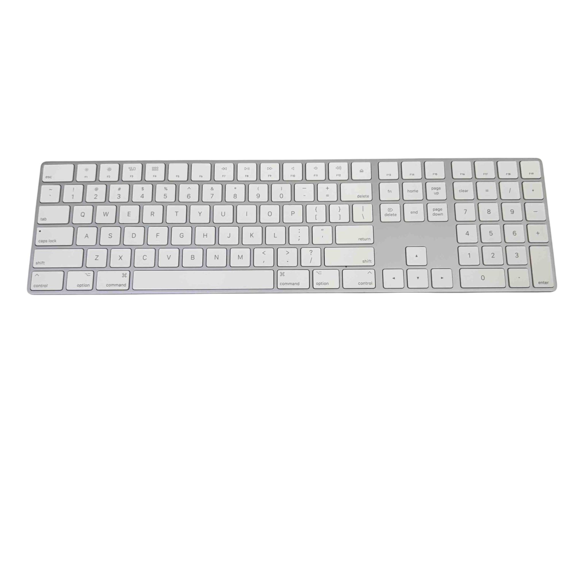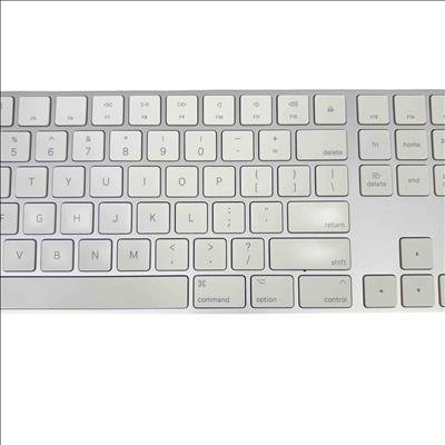 Previously owned. The Apple keyboard has been tested and works well and is in good condition that has light blemishing on the top of the keyboard and has many scuffs and very light scratches on the bottom. See photos for details.