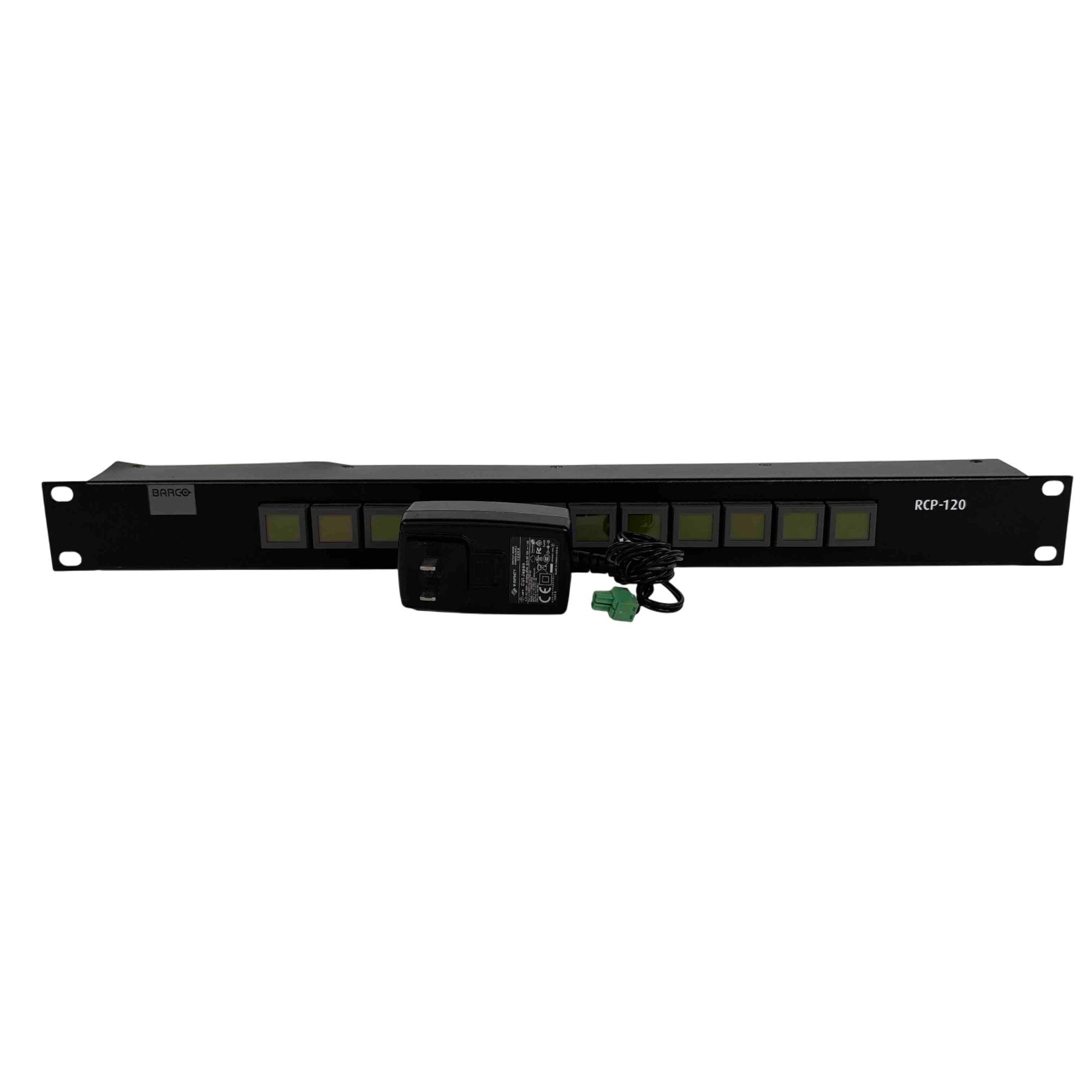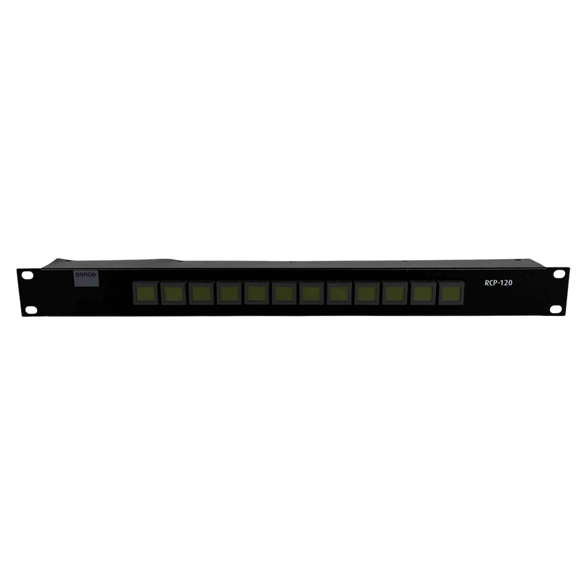 The Barco RCP-120 Remote Control Panel is a modular component for the FSN Series fully configurable, 3G-ready multi-format switcher. This panel enables you to remotely control the switcher's AUX outputs. It allows you to select up to 20 sources for monitoring, perform adjustments, and record without interfering with the main production workflow, which is managed by the FSN-150 control panel.