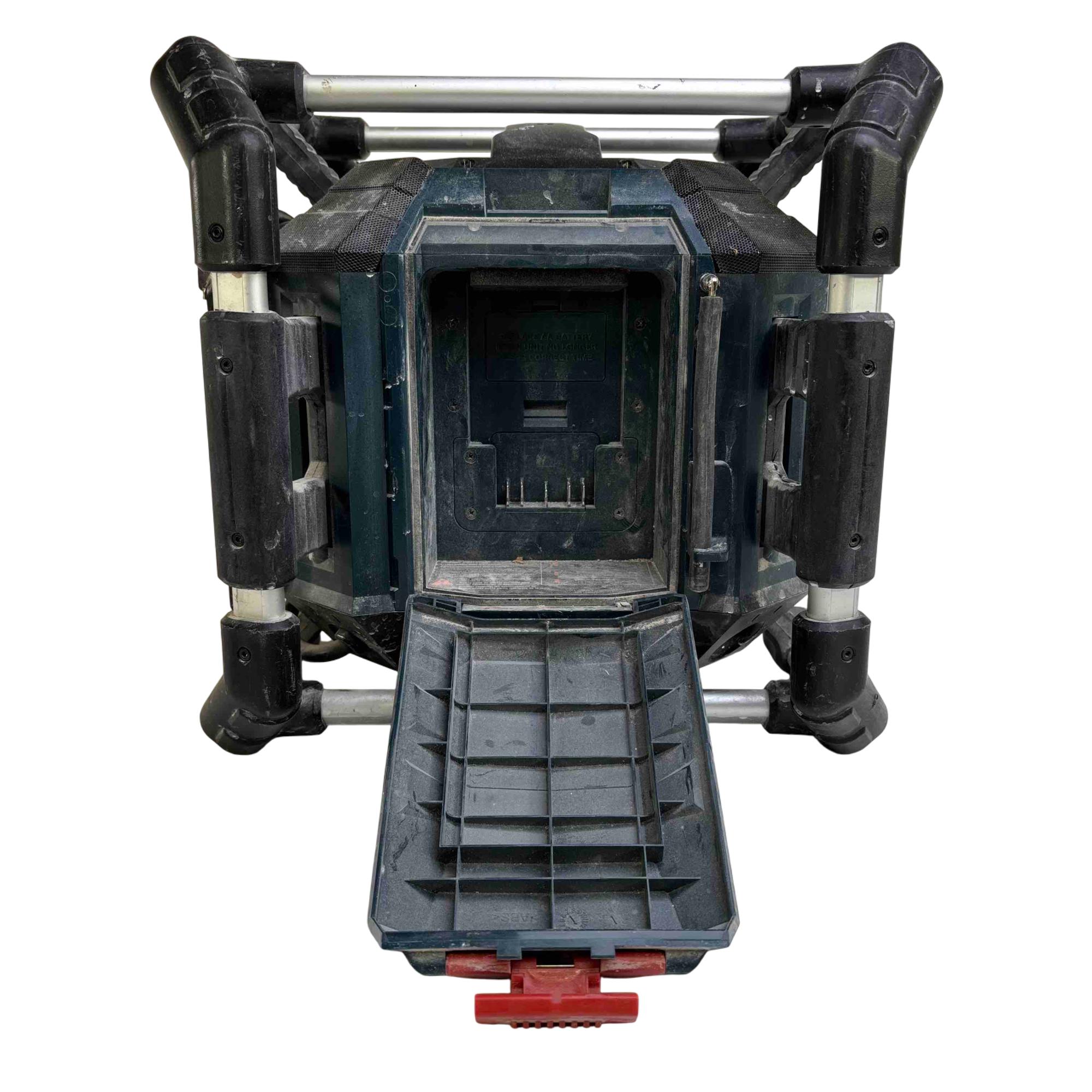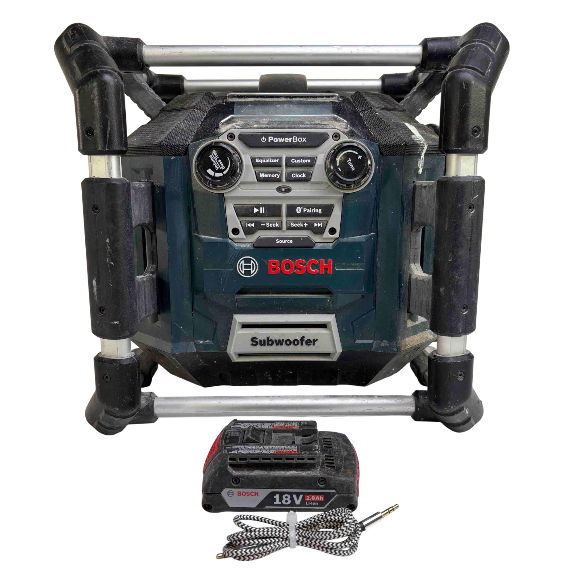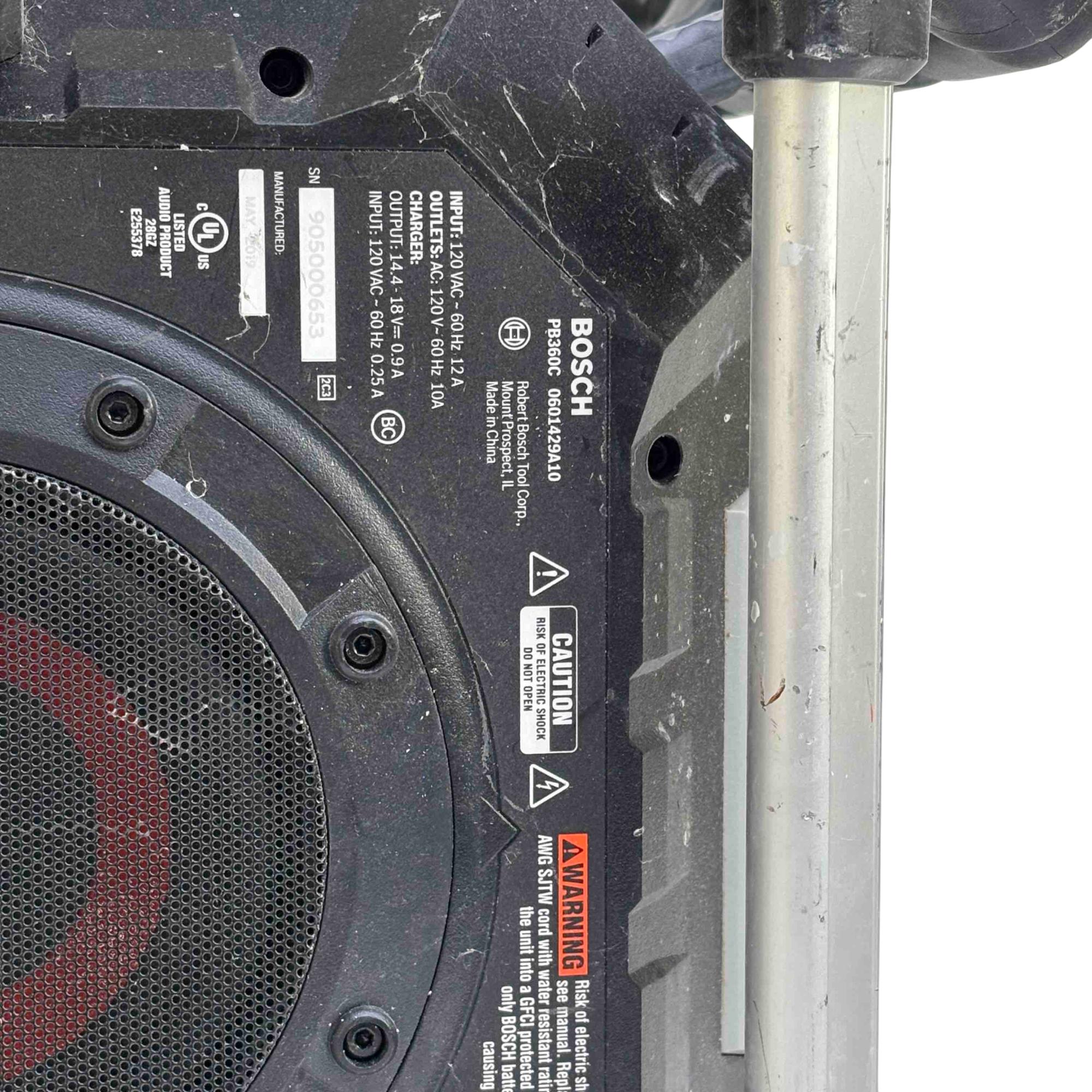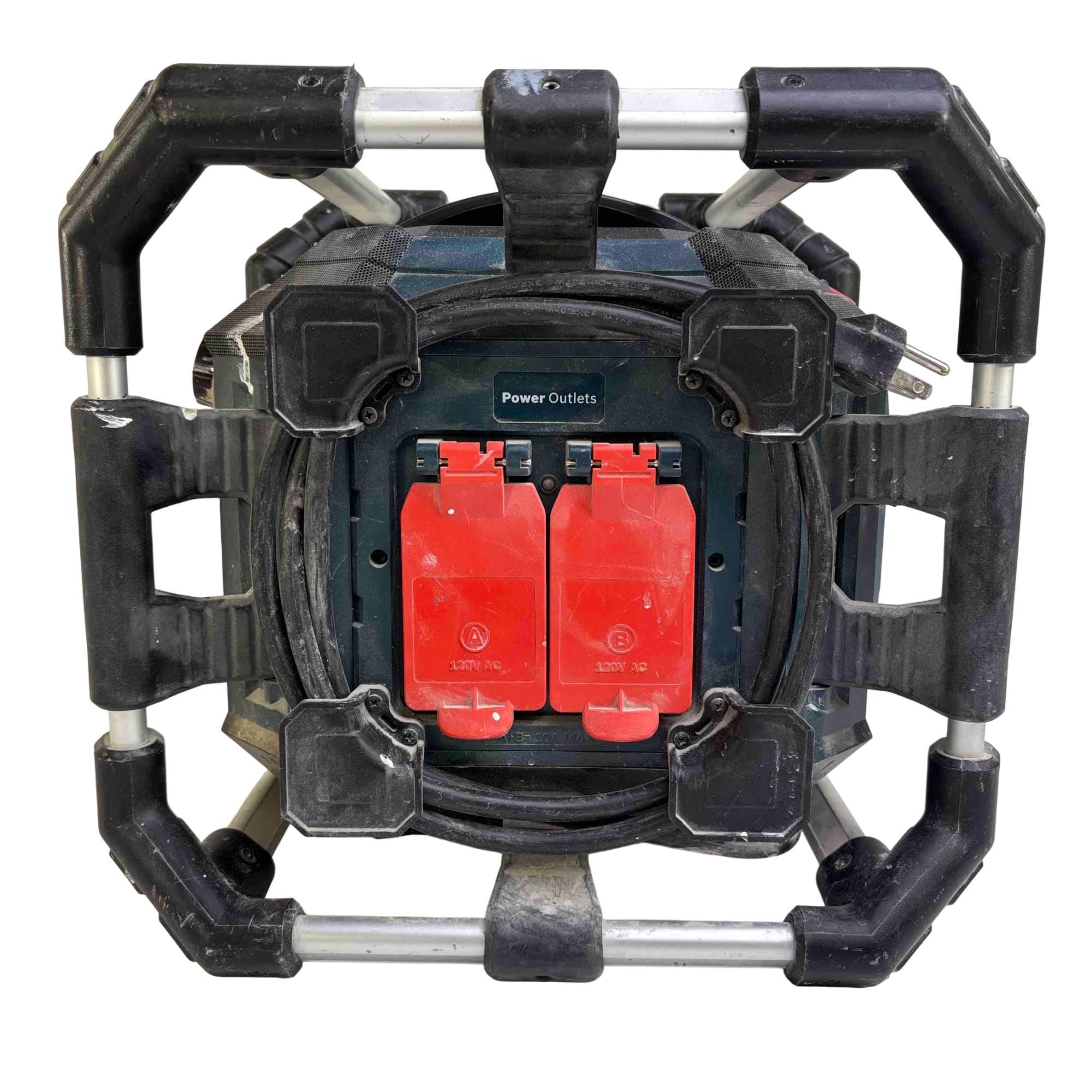 USB charging port with 5-volt 1.0-amp rating – for charging Apple and other phones and devices – works when Power Box is powered by a 120 V AC outlet or by a Bosch 18V battery