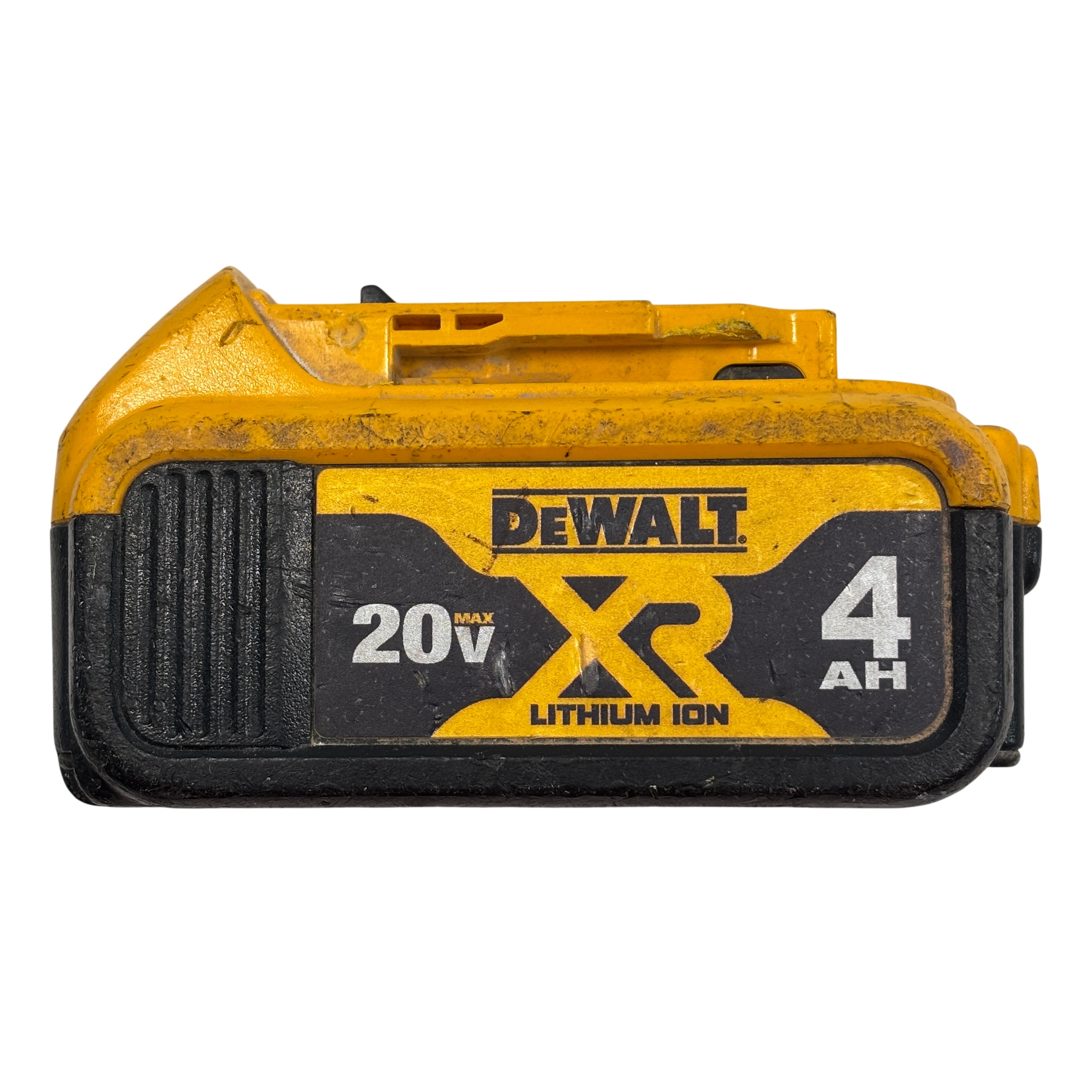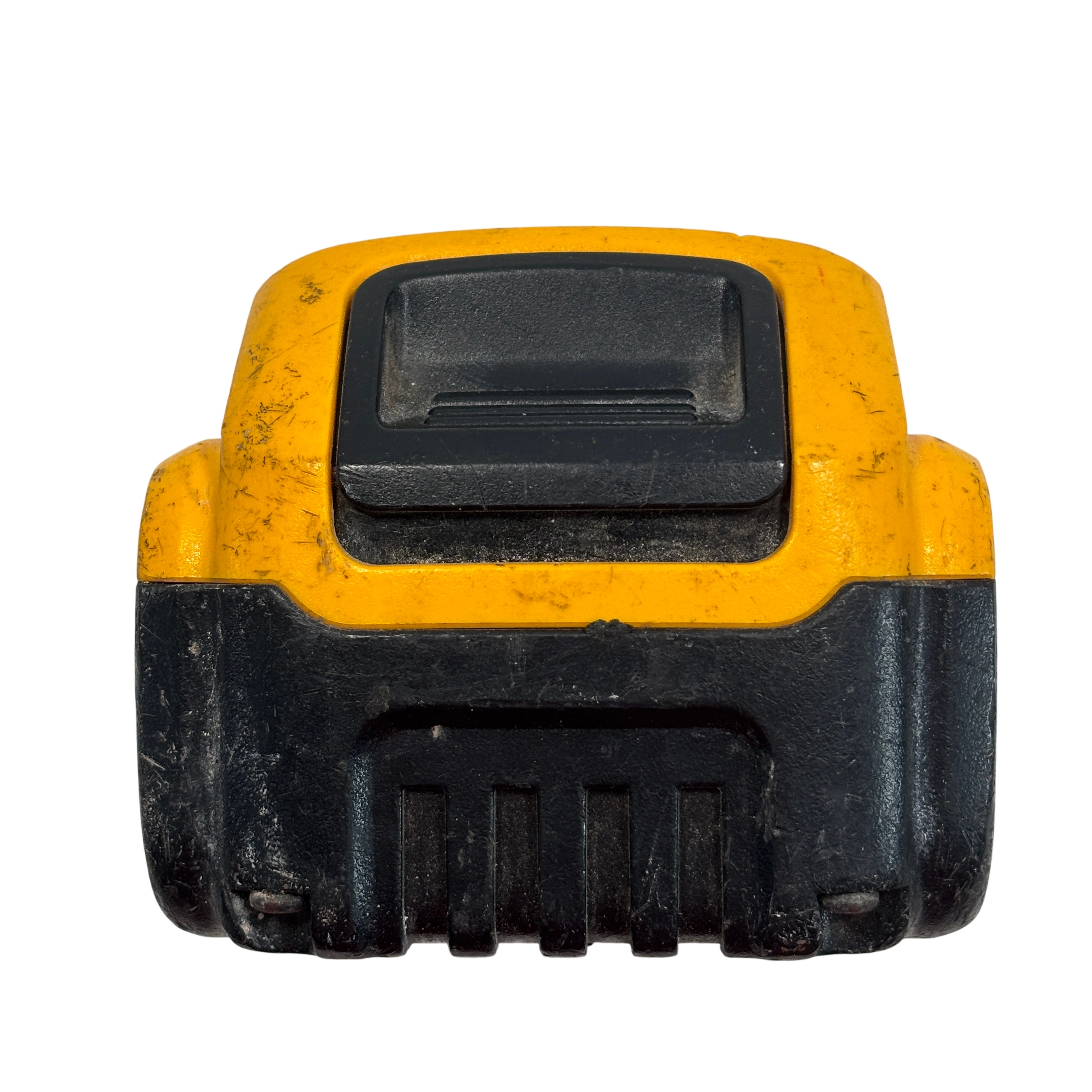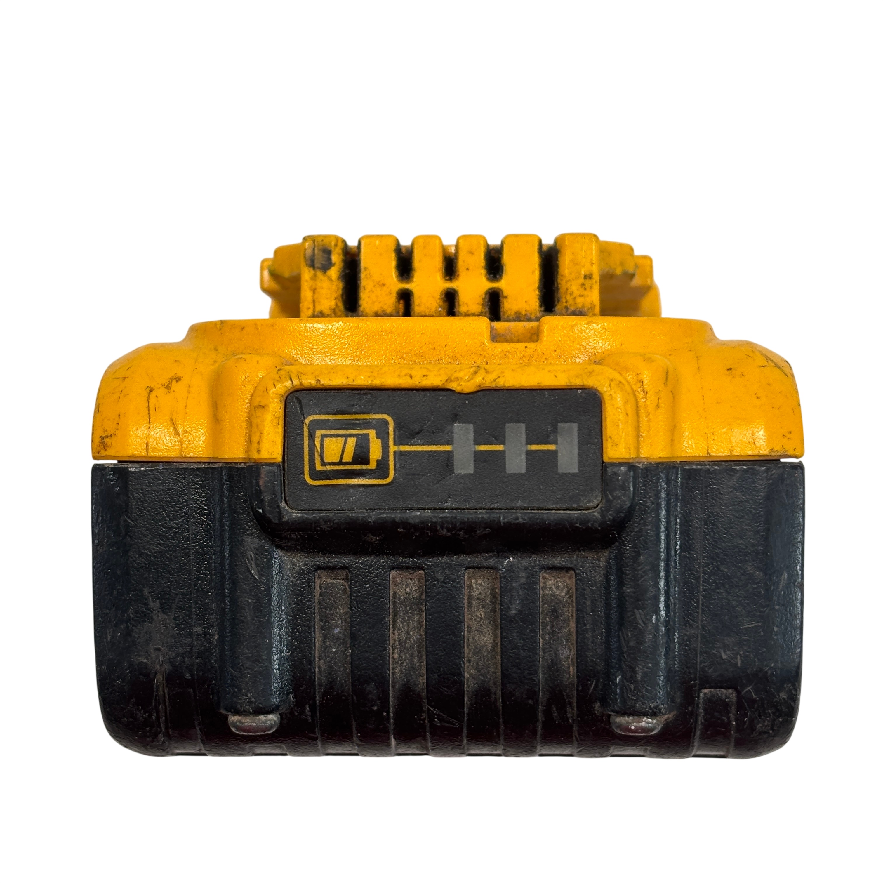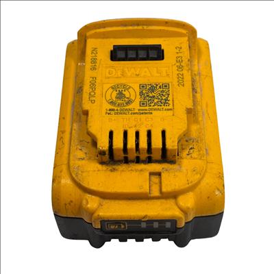 This DeWalt battery pack is previously owned and it is overall in fair condition. The battery has been tested and it works. The battery is covered with dirt stains, black marks, and scratches from past use. See photos for details.