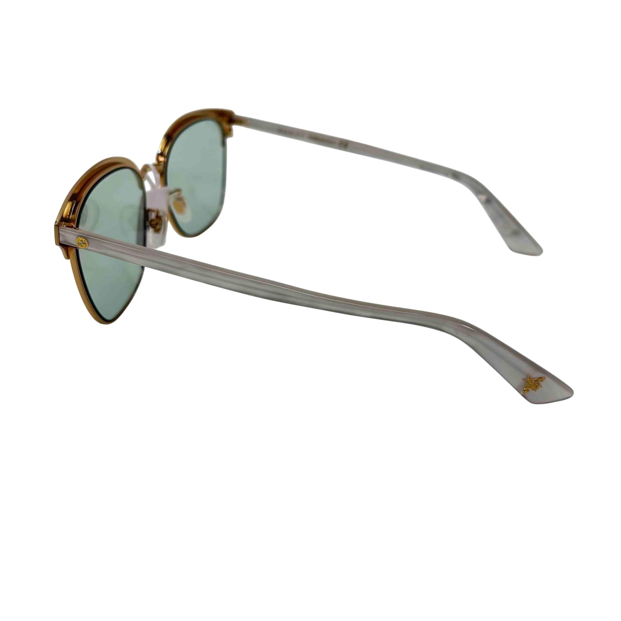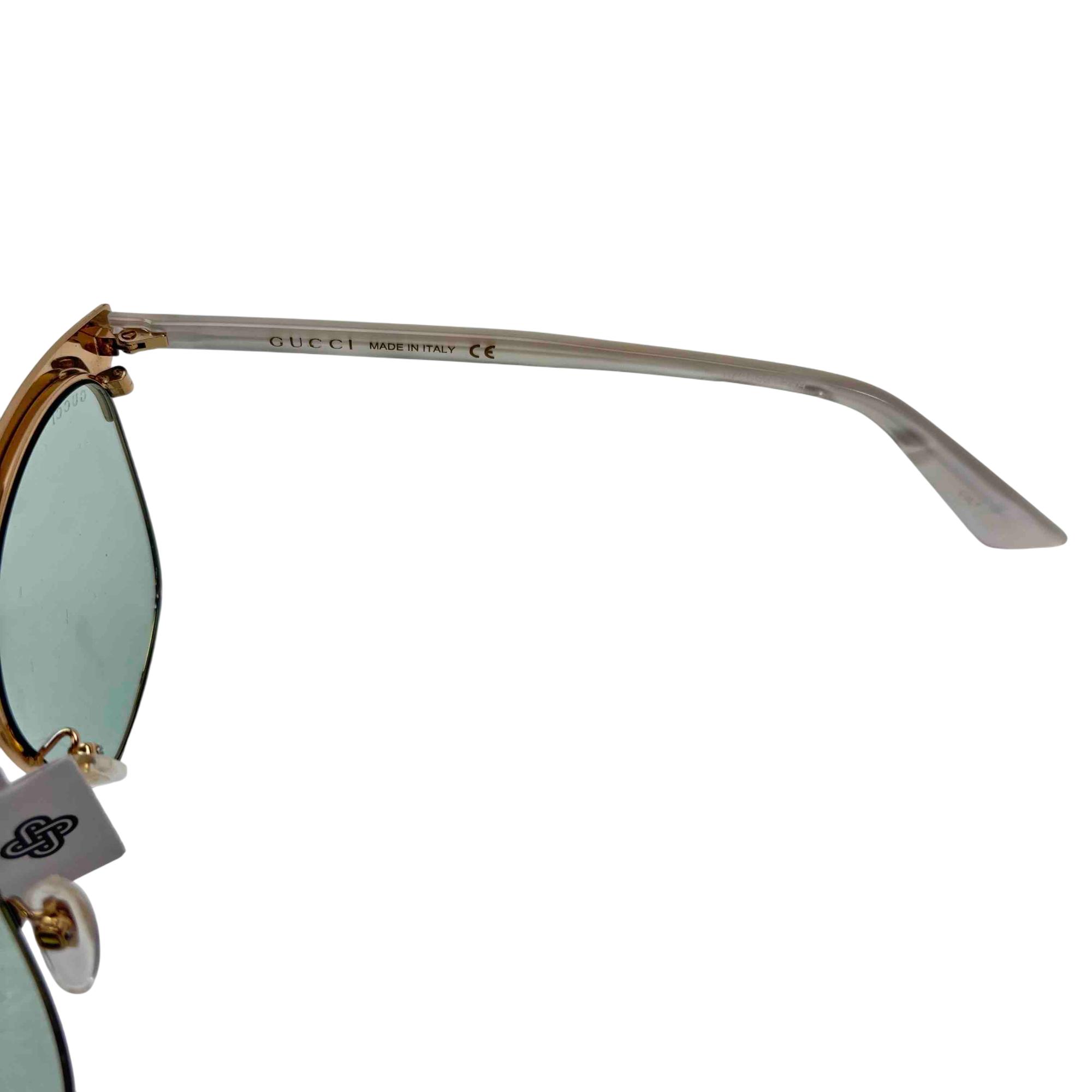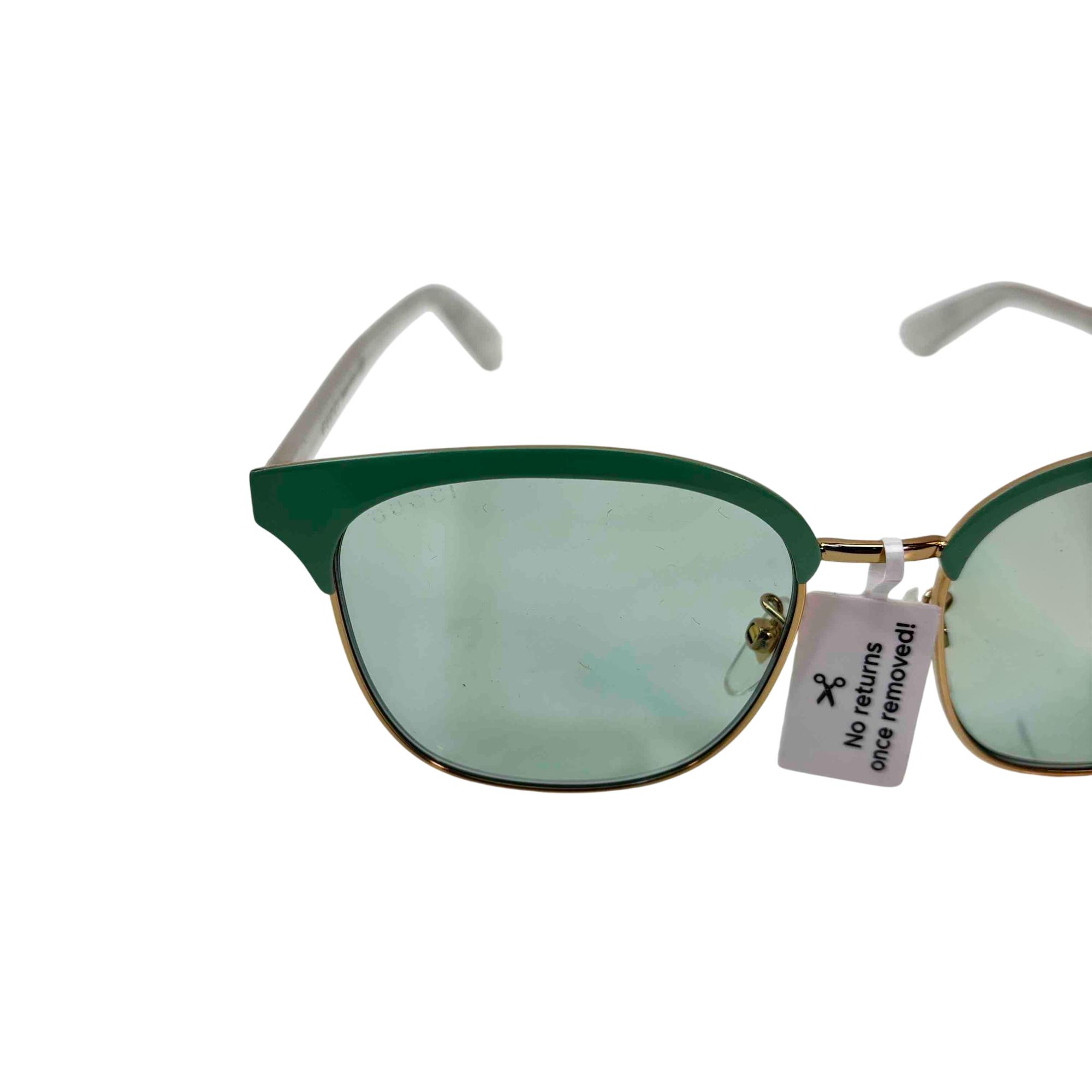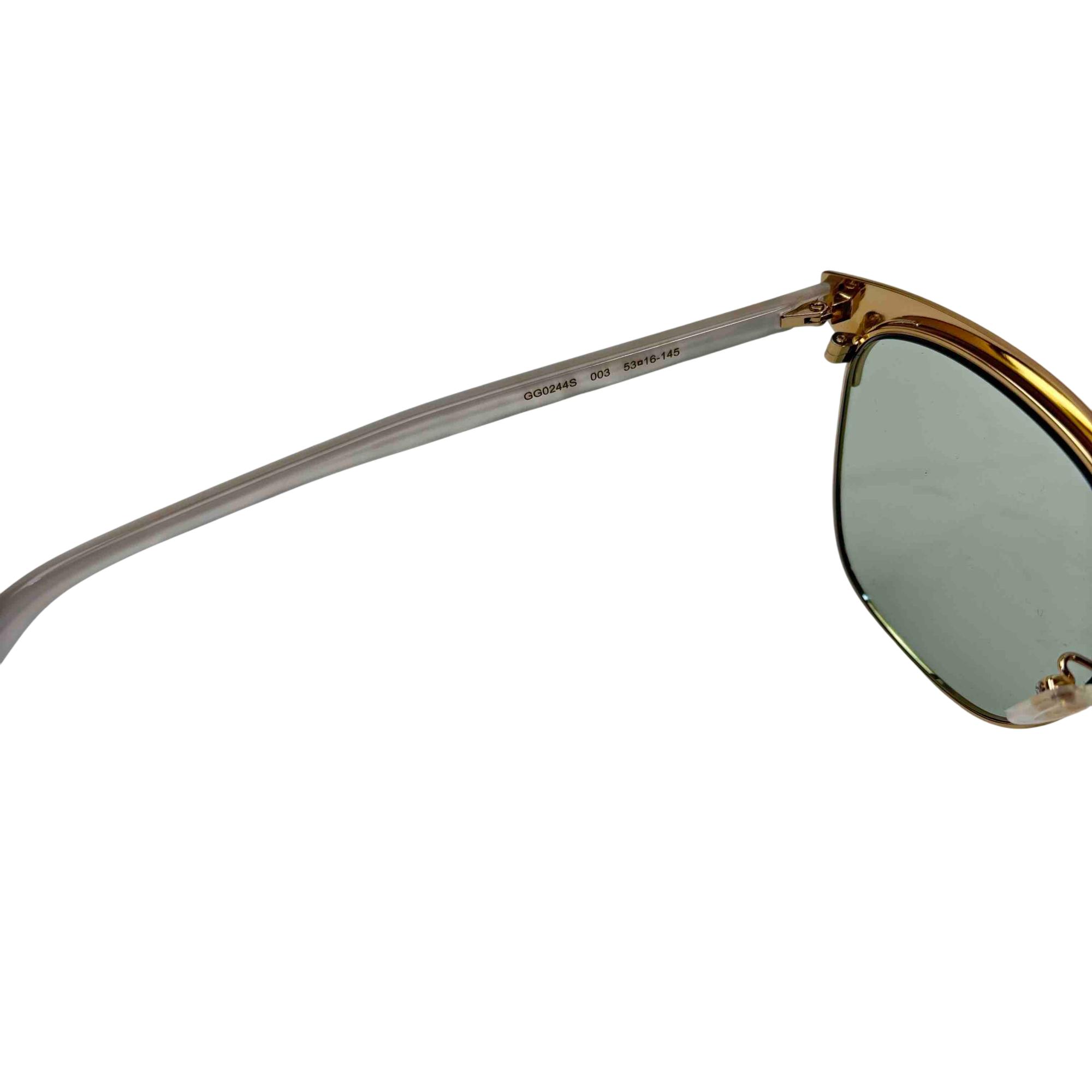 Elevate your style with these stunning GUCCI GG0244S Green and Gold Sunglasses. Crafted with a luxurious green frame accented by elegant gold rims, these sunglasses provide not just UV protection but also an impeccable fashion statement. Packaged with a chic case, they are the perfect accessory for those who appreciate high-end elegance and sophistication.