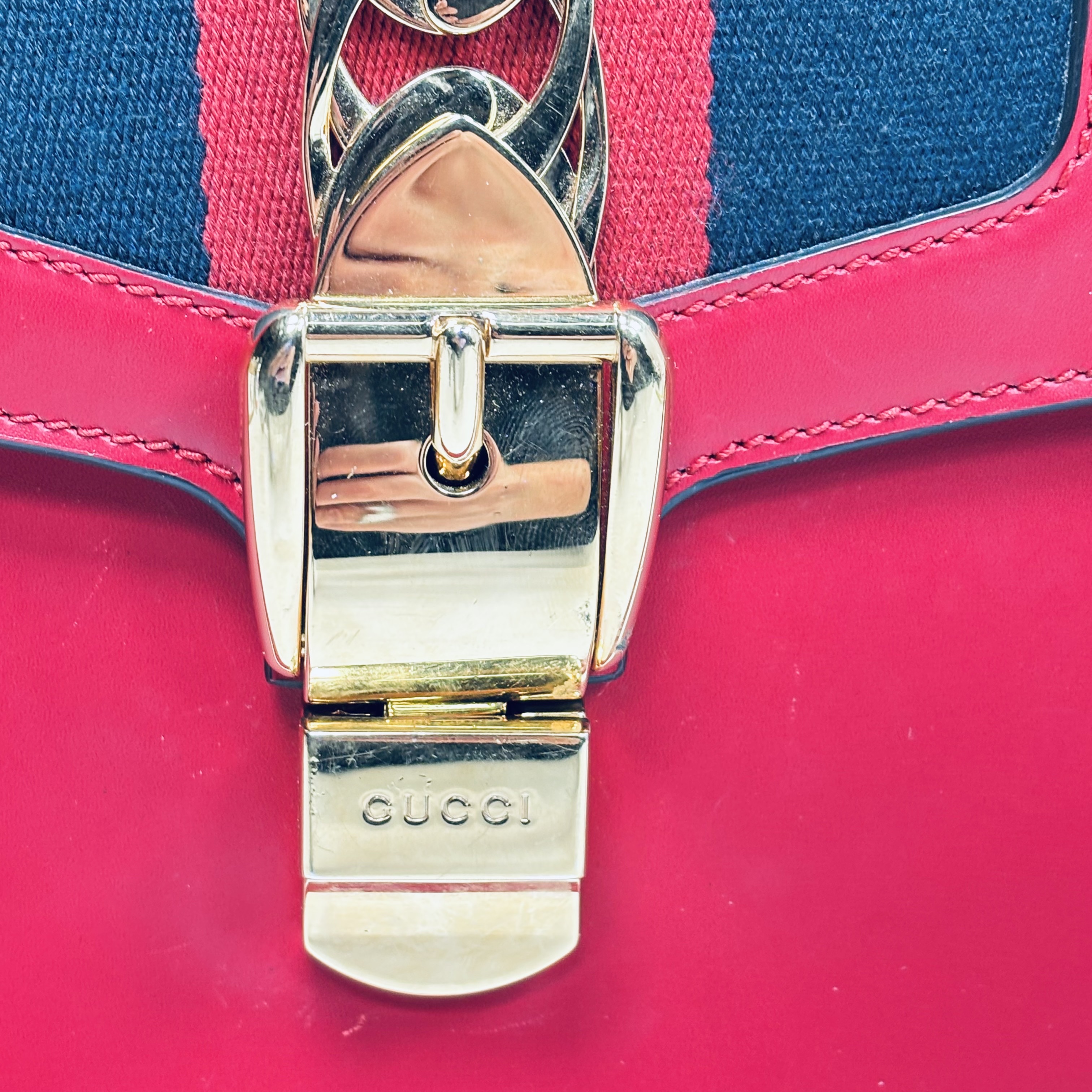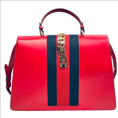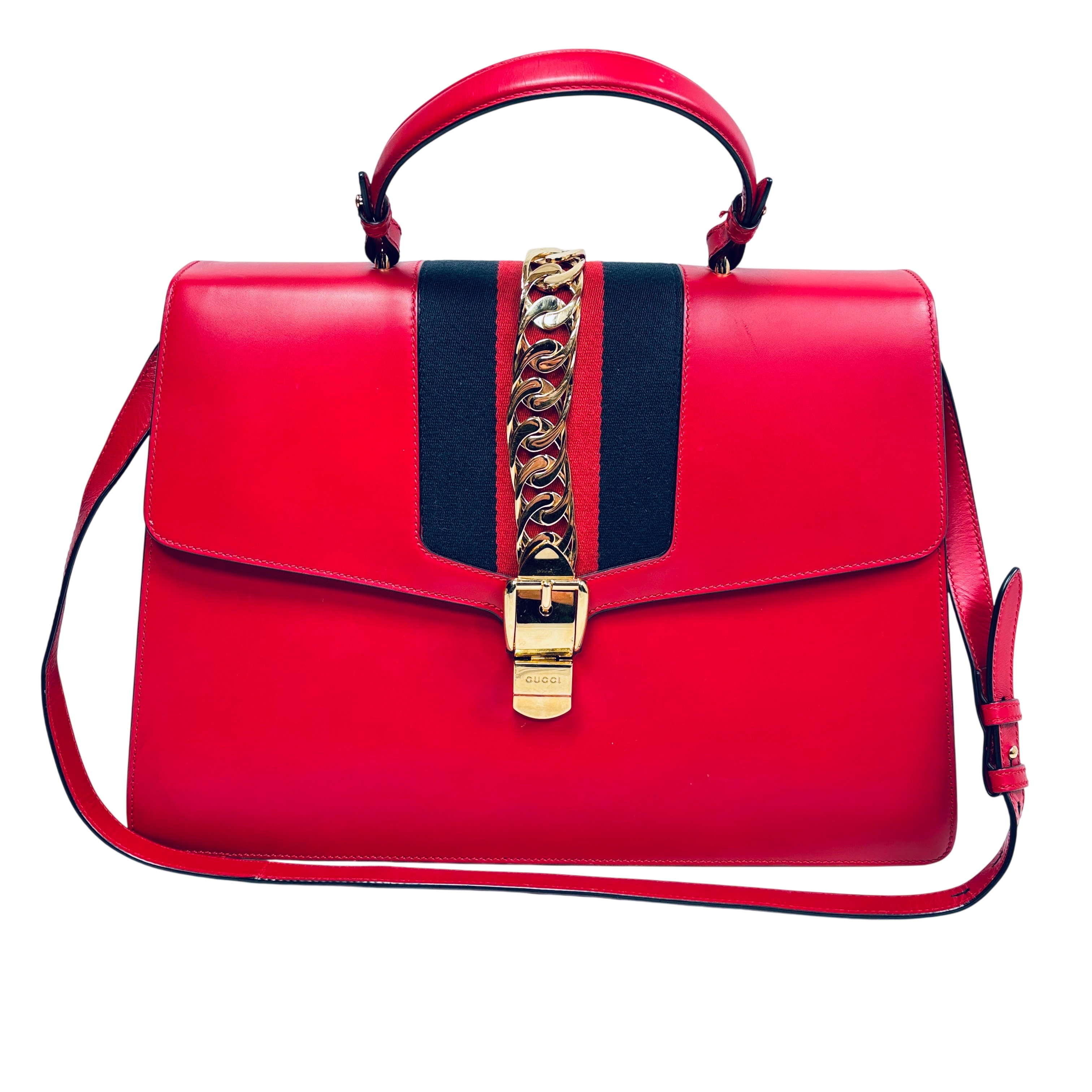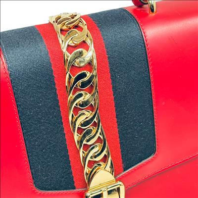 Gucci Sylvie Shoulder Bag Red Smooth Leather