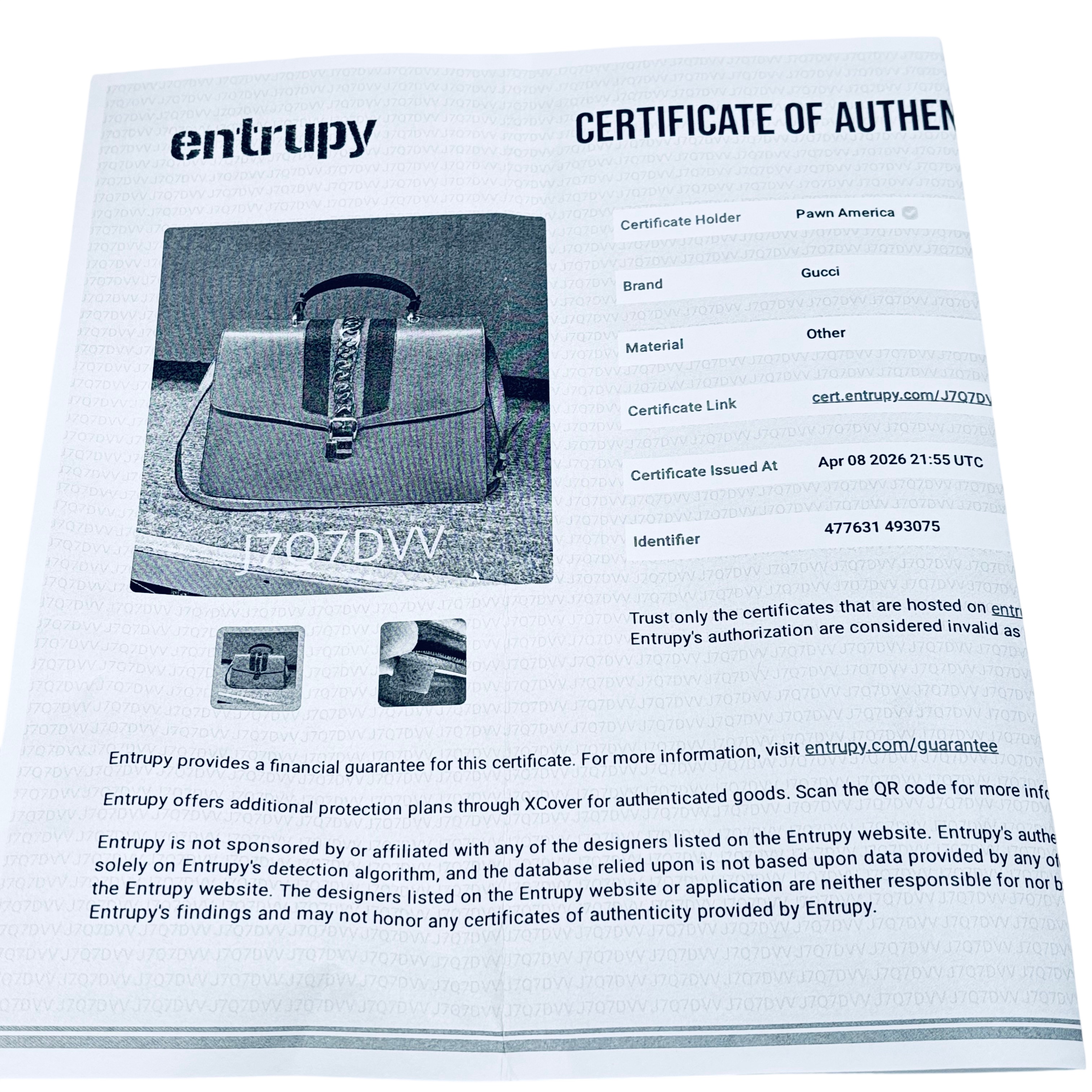 Entrupy Certificate