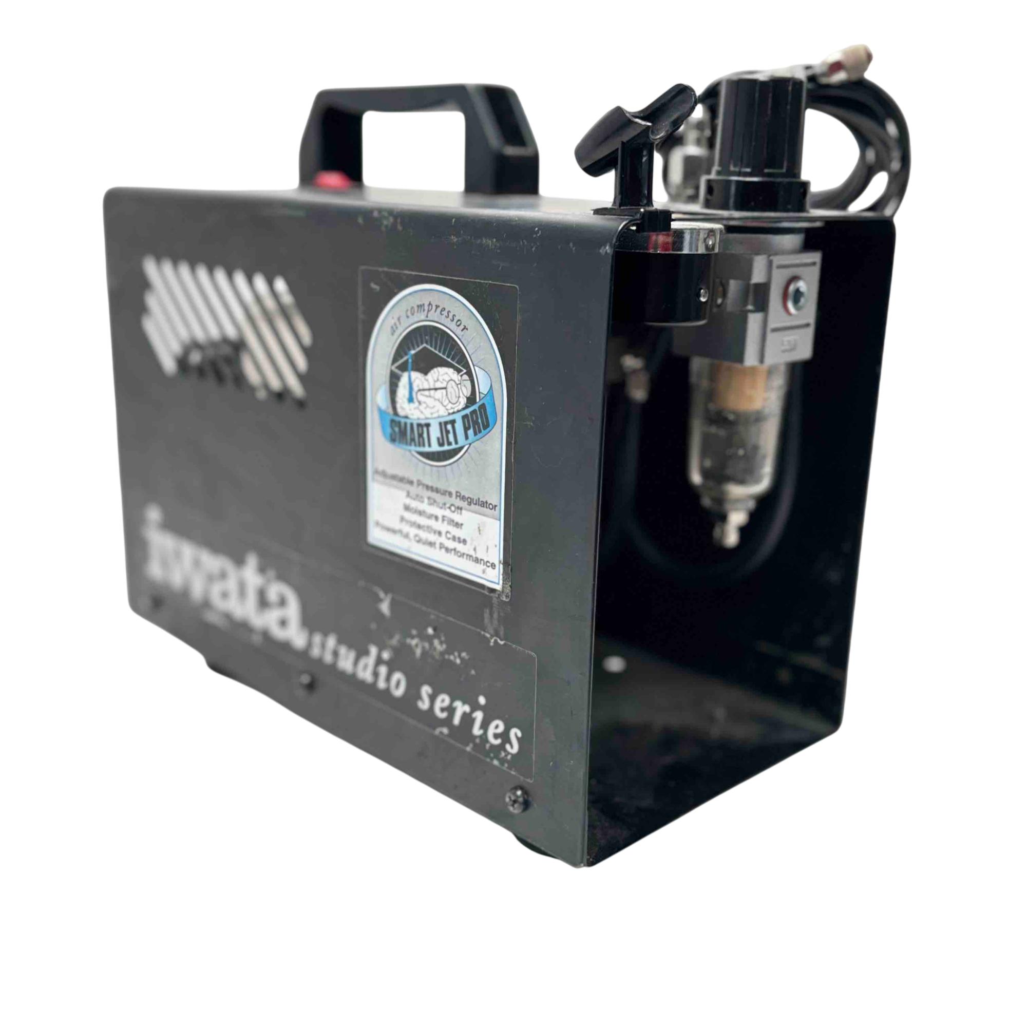 Experience ultimate precision with the Iwata Smart Jet Pro Studio Series Airbrush Compressor. Perfect for artists and hobbyists, this compact and powerful unit features an adjustable pressure regulator, auto shut-off, and moisture filter for clean and consistent airflow. Delivering quiet performance with unparalleled reliability, it’s the ideal choice for all your airbrushing needs.