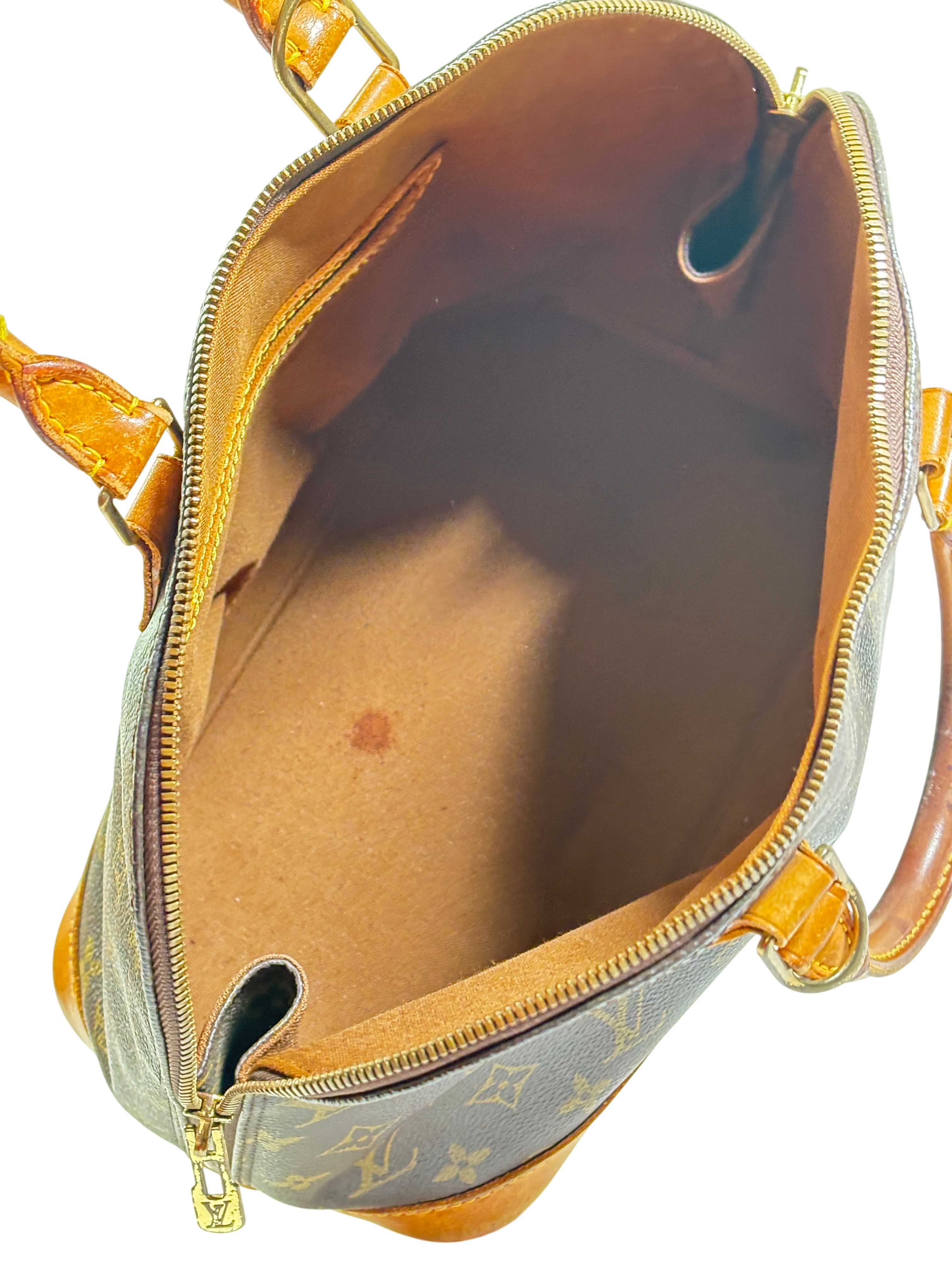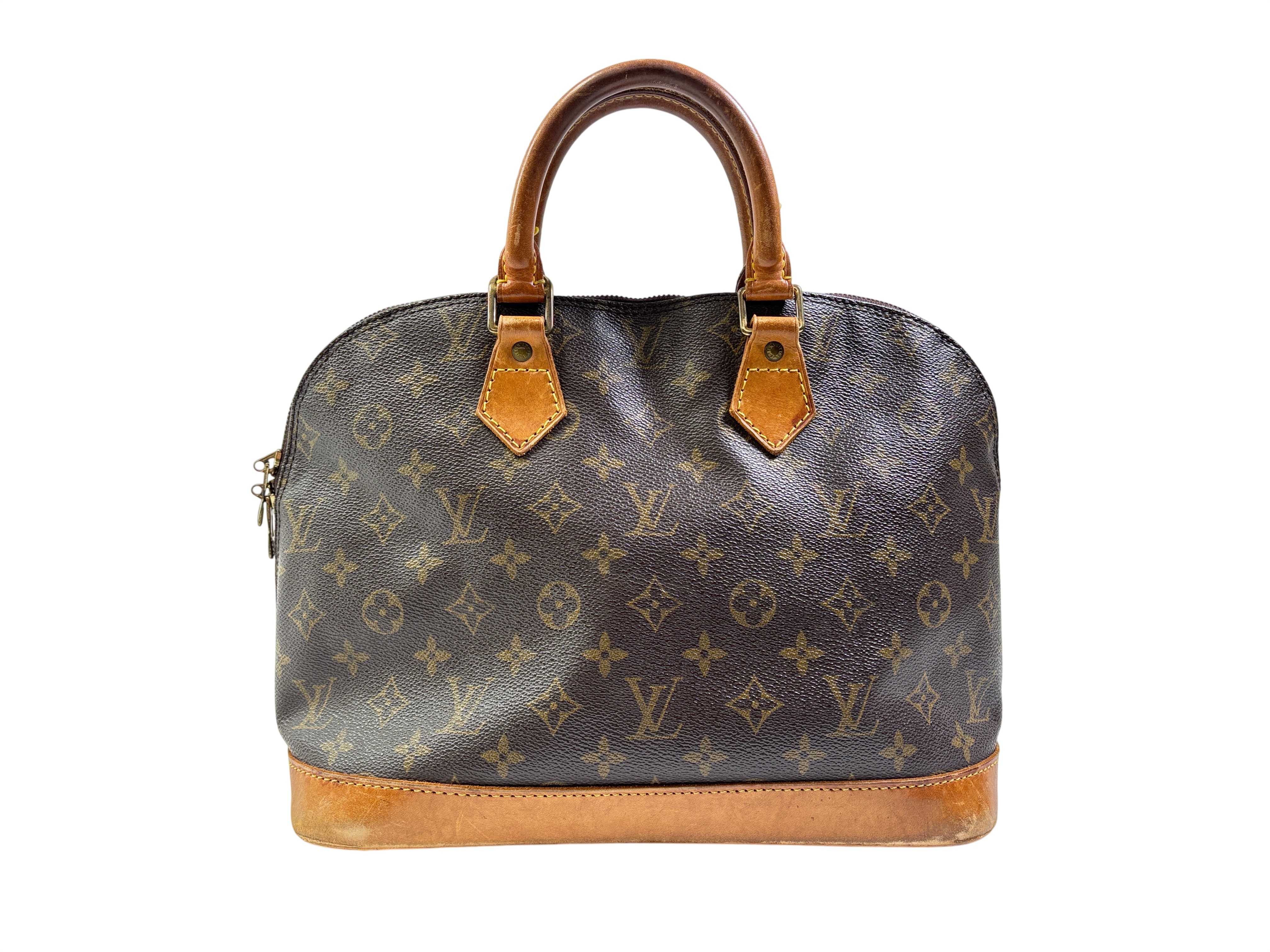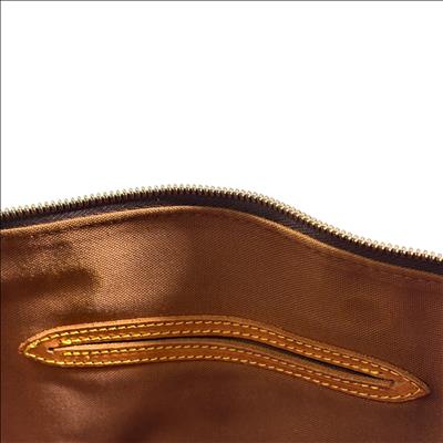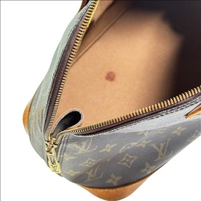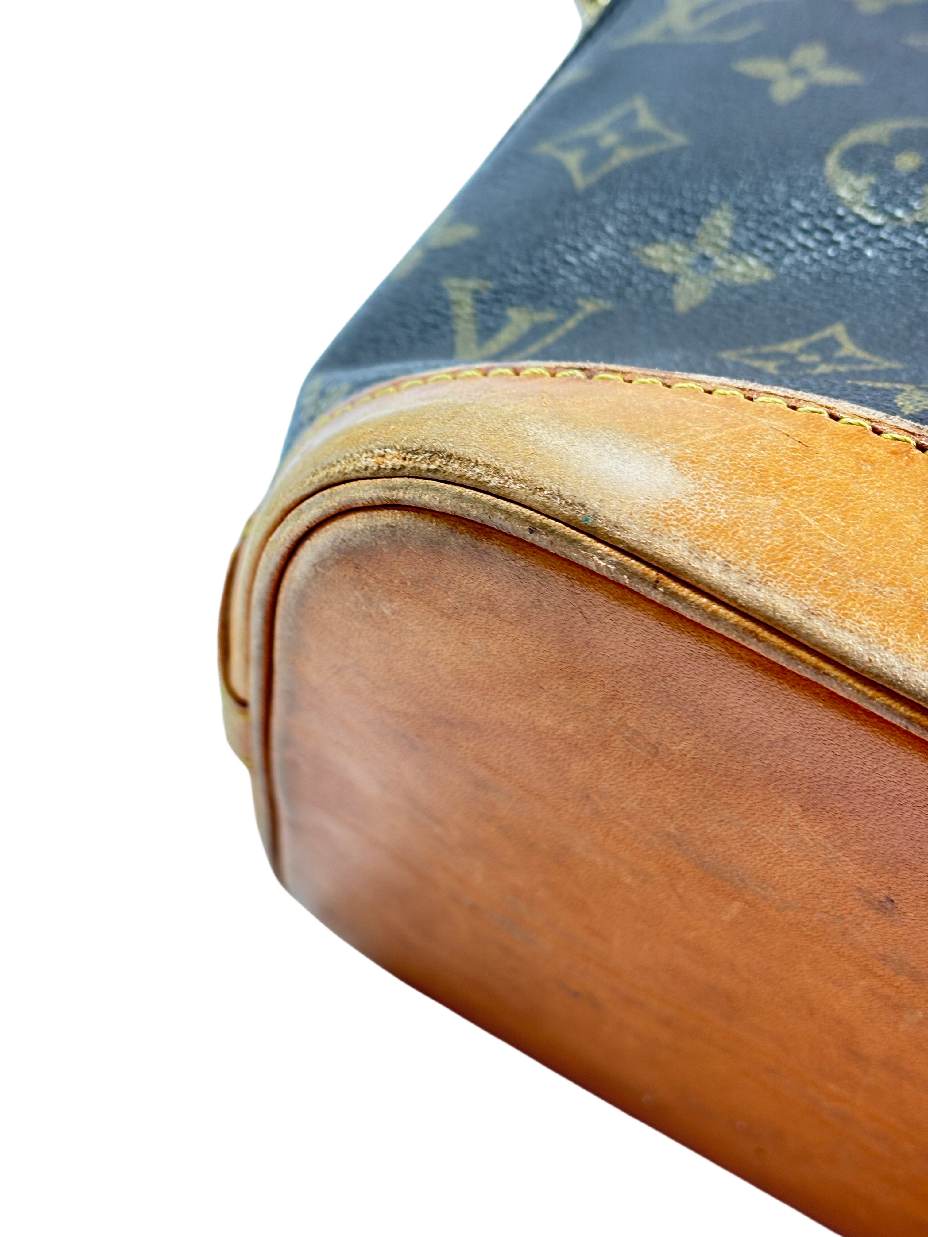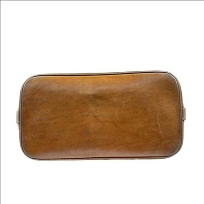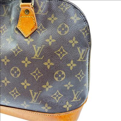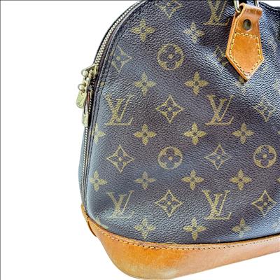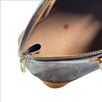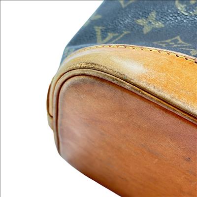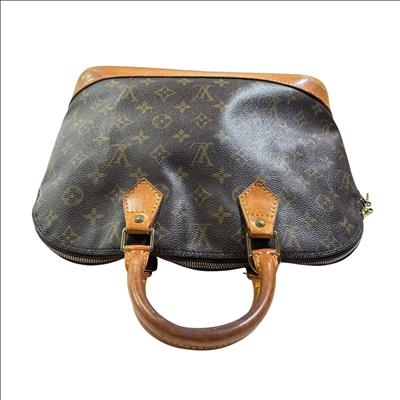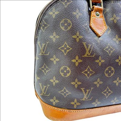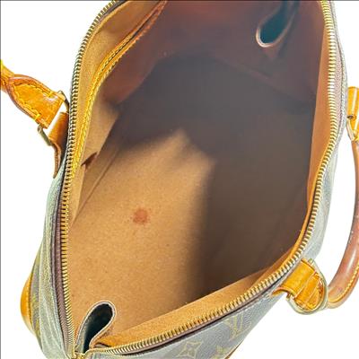 This bag has been previously owned. It has scuffs, scratches, and heavy rubbing on the bottom corners. The handles are creased. The hardware has scratches but remains bright and shiny. The interior lining has stains from previous use. See pictures for details.