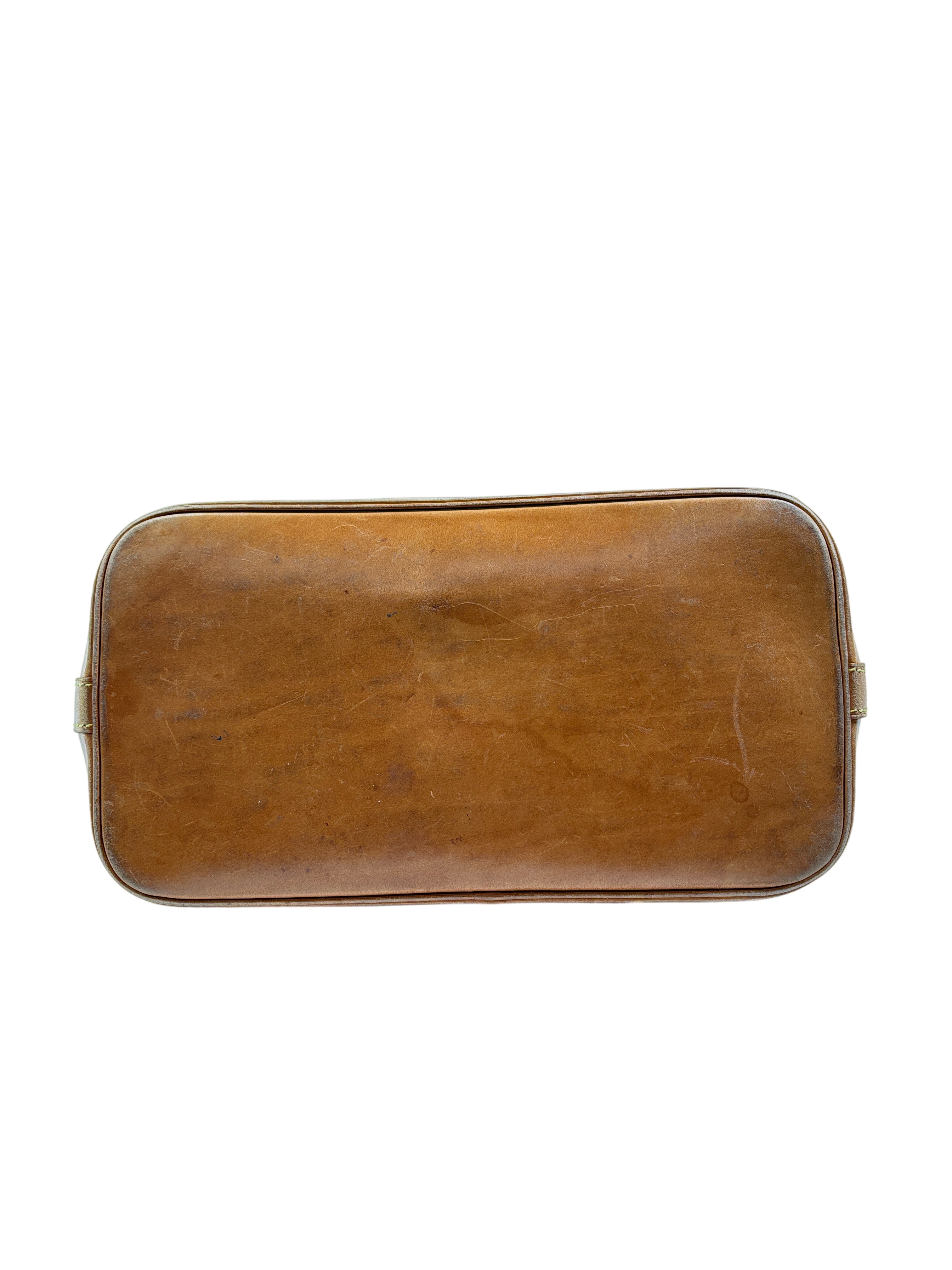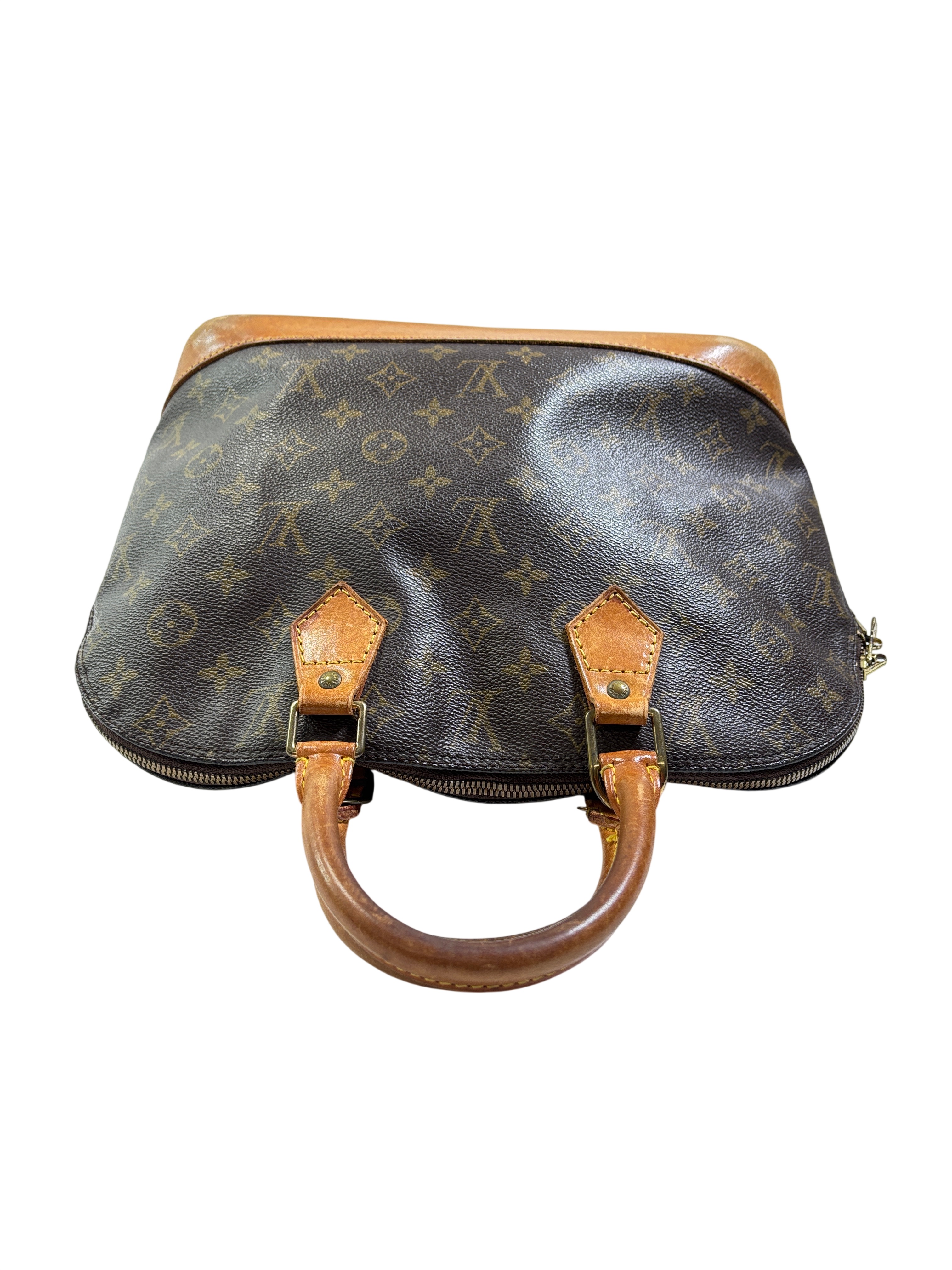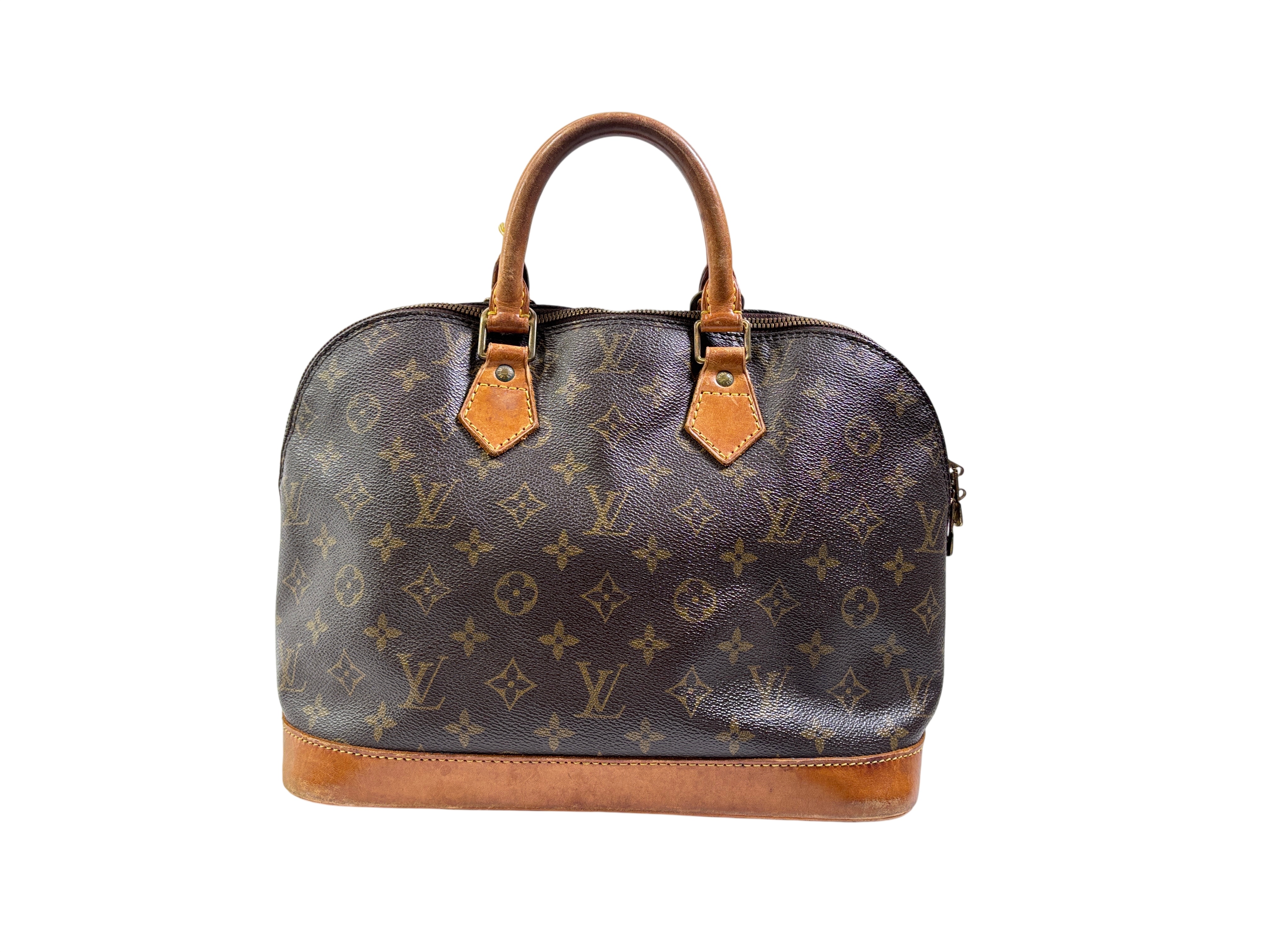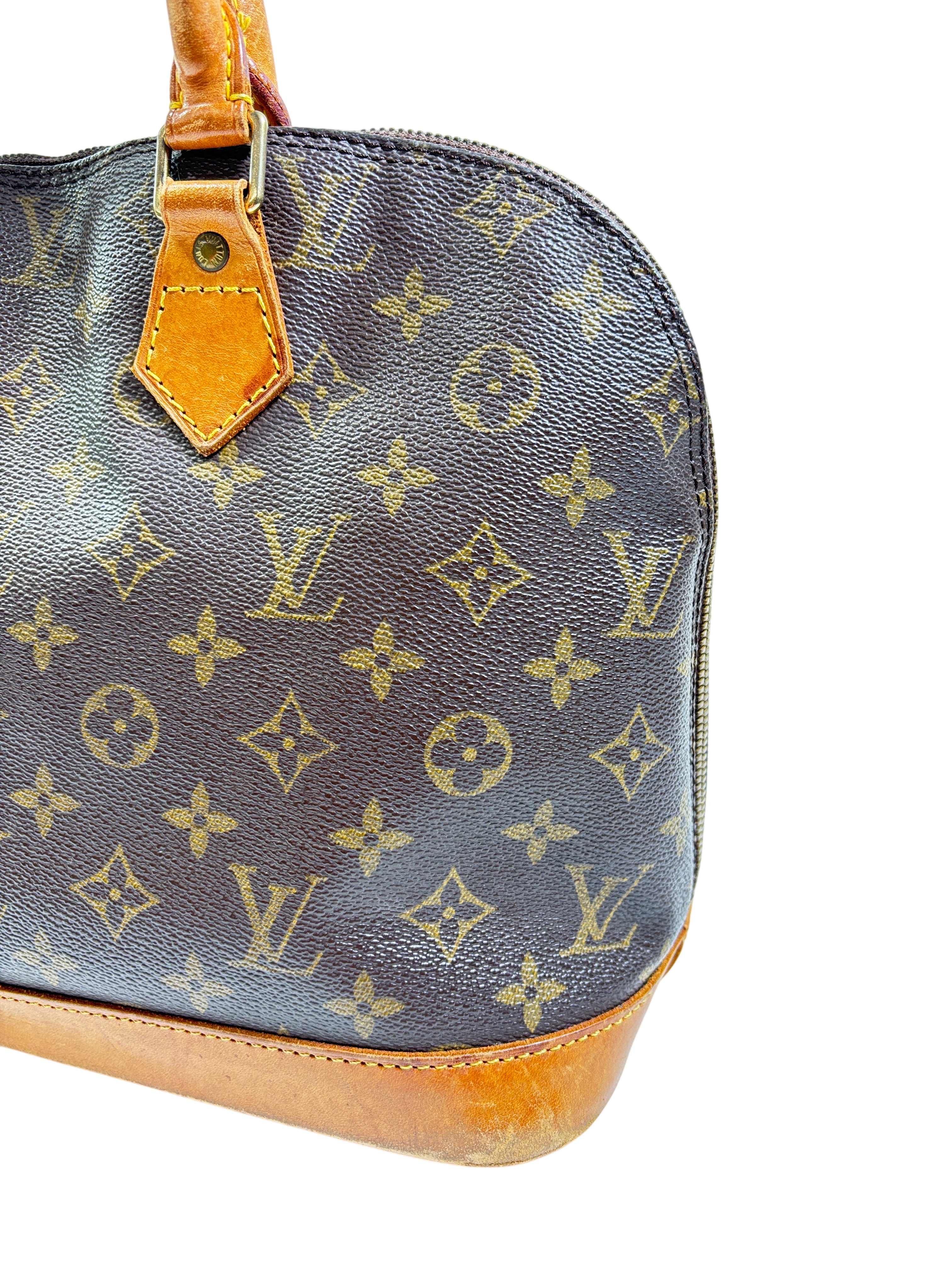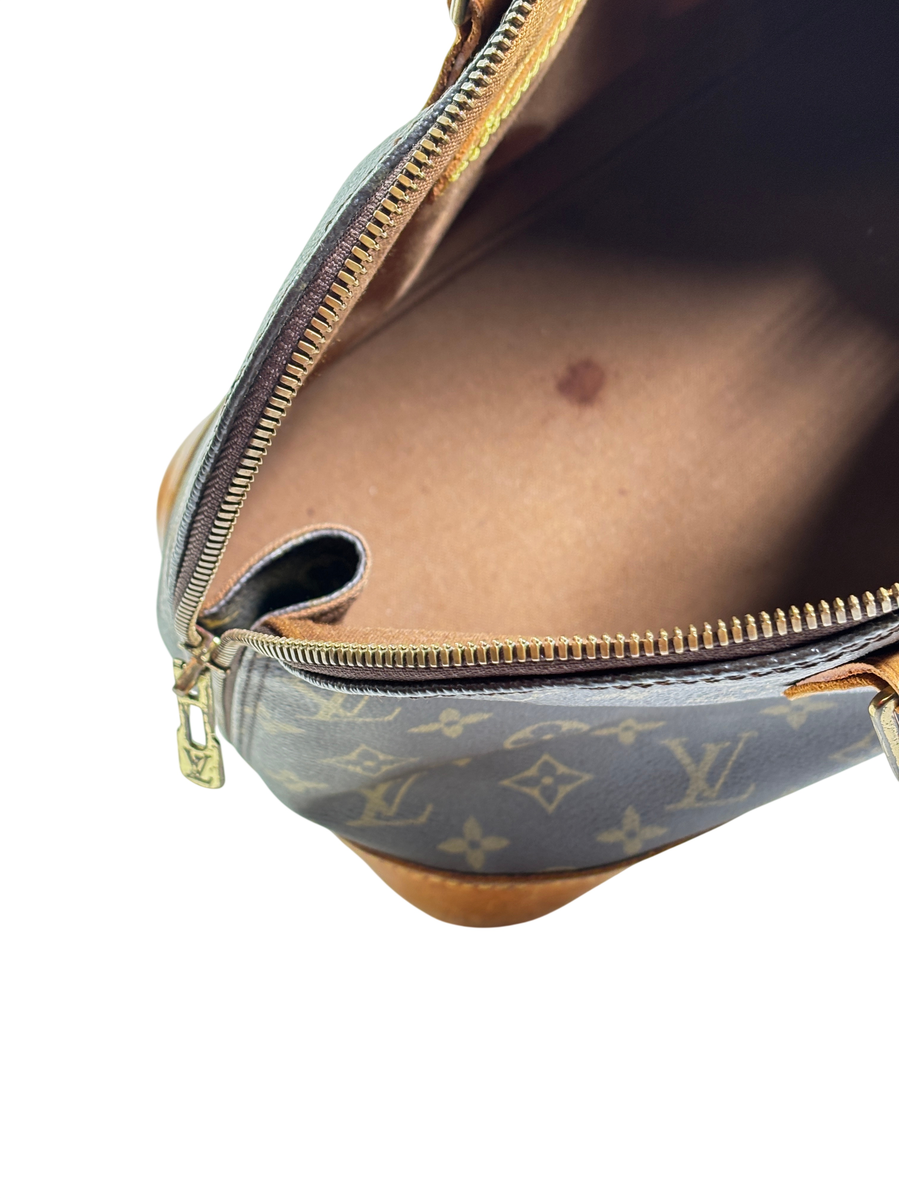 This bag has been previously owned. It has scuffs, scratches, and heavy rubbing on the bottom corners. The handles are creased. The hardware has scratches but remains bright and shiny. The interior lining has stains from previous use. See pictures for details.