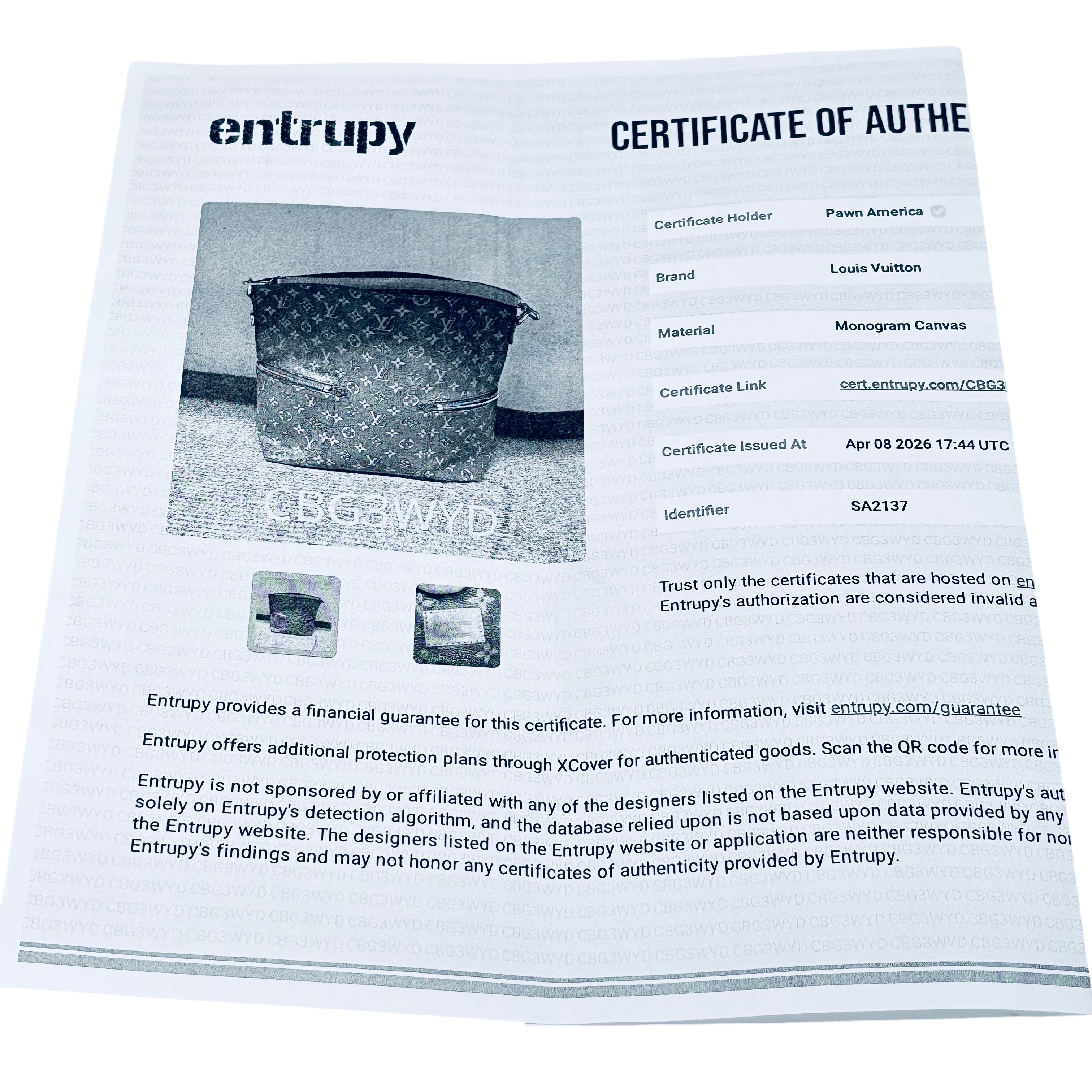Entrupy Certificate
