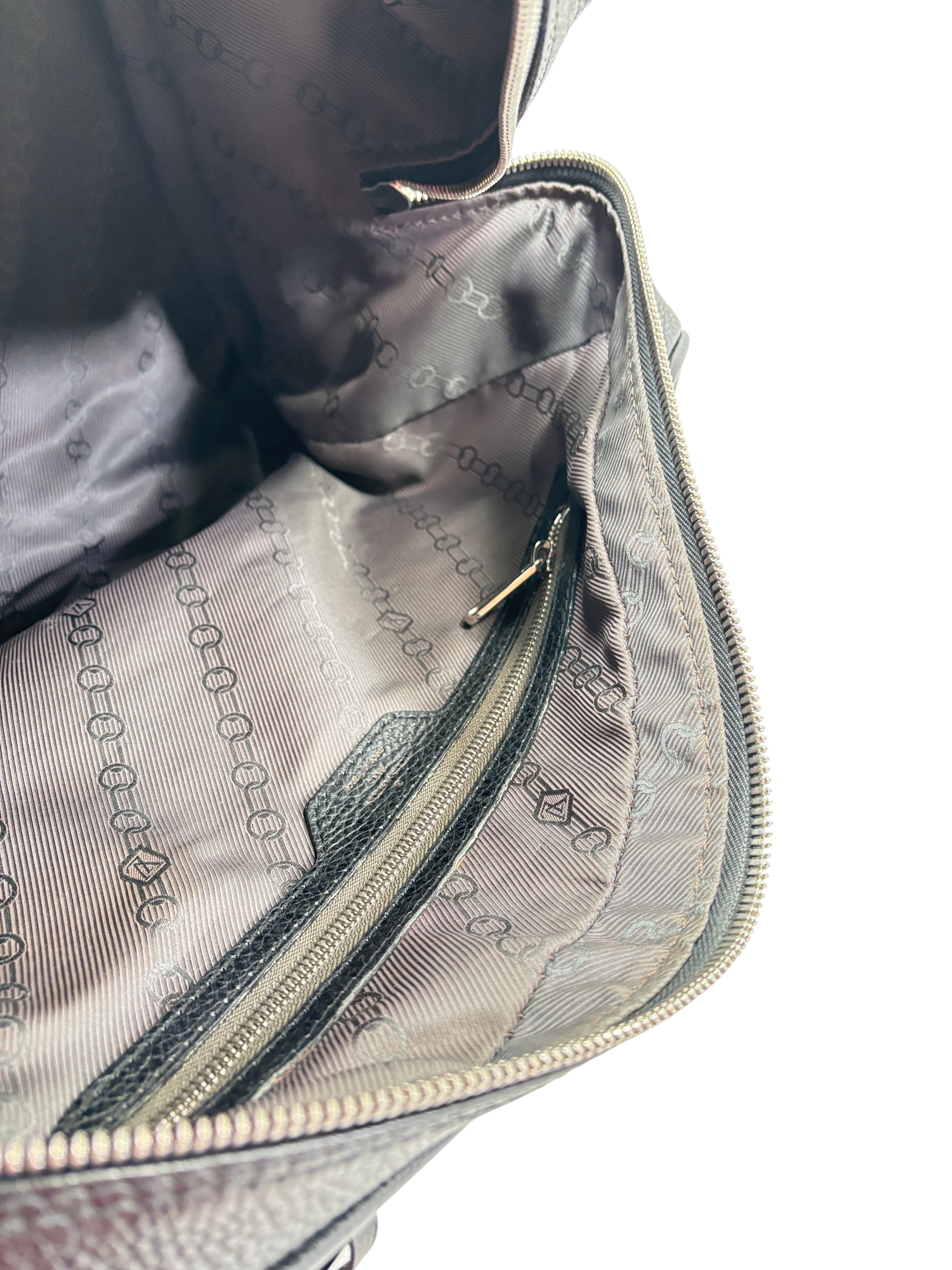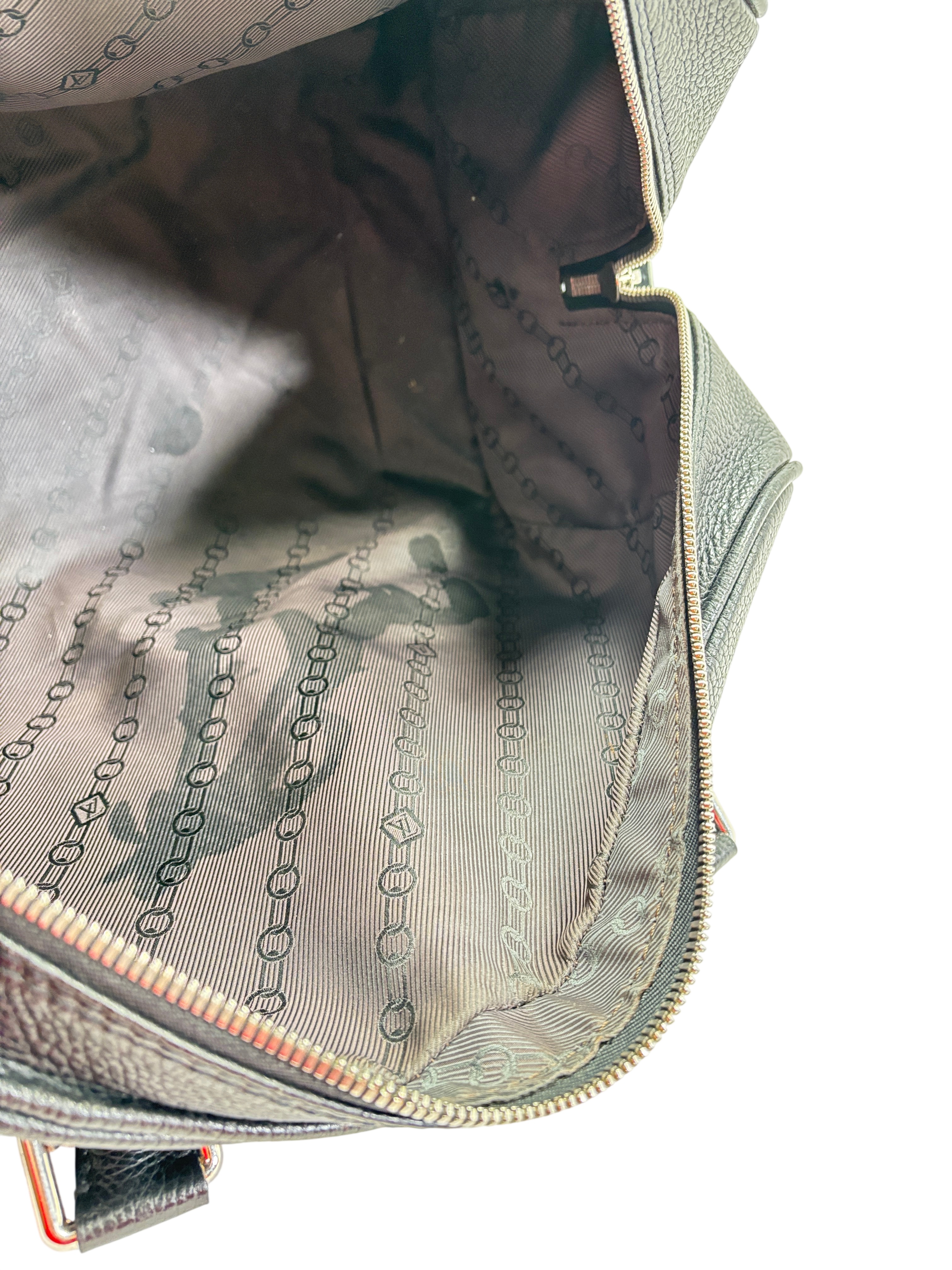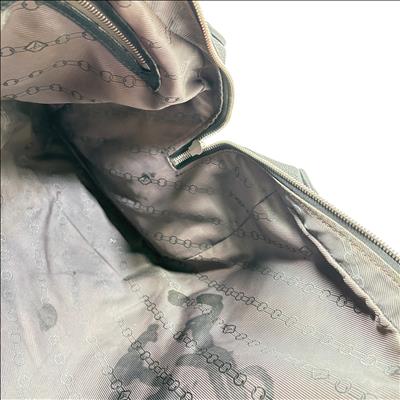 This bag has been previously owned. It shows signs of heavy use. It's out of shape. The exterior leather has scuffs and heavy rubbing on the bottom corners. The handles are creased. The hardware has scratches. The interior lining has heavy wear. See pictures for details.