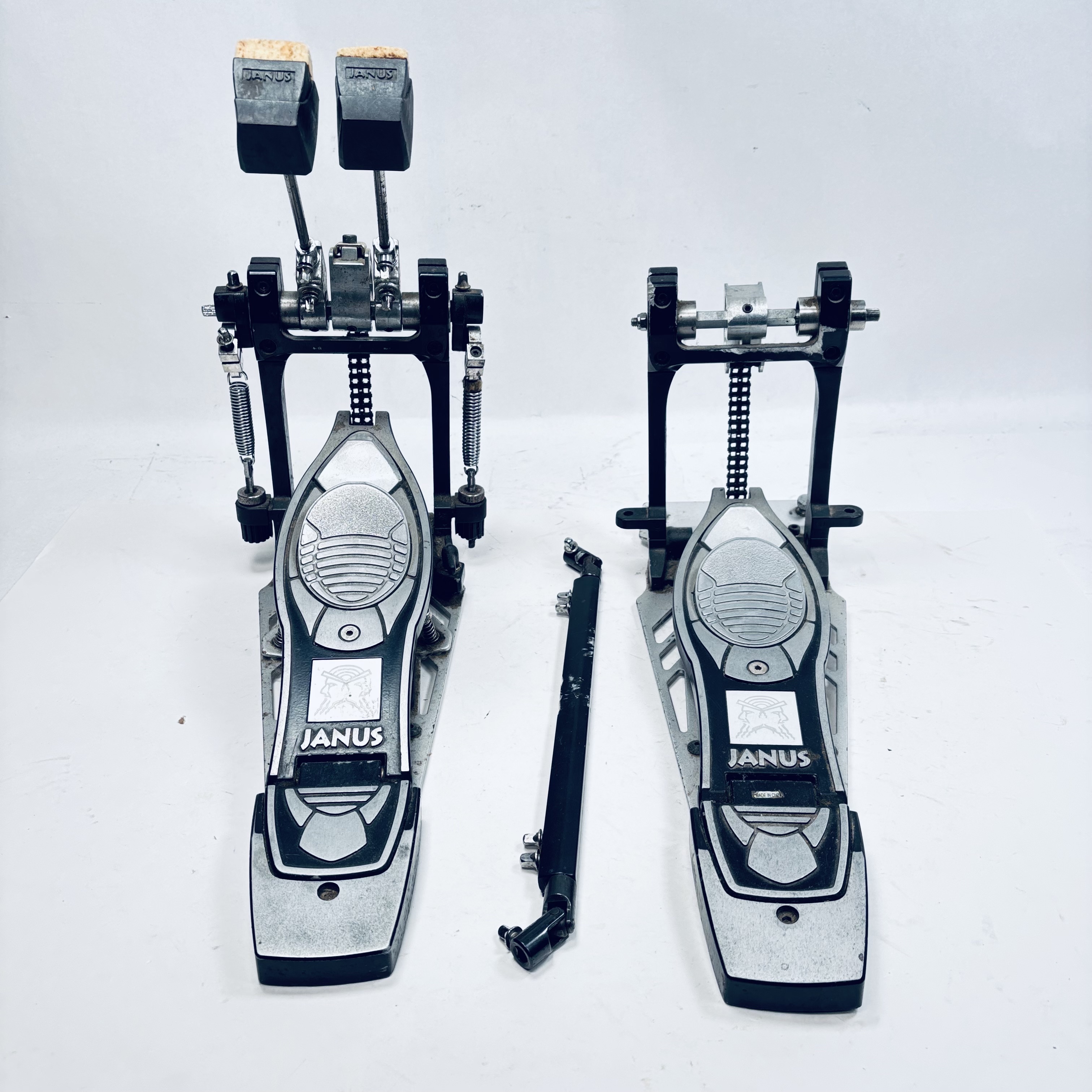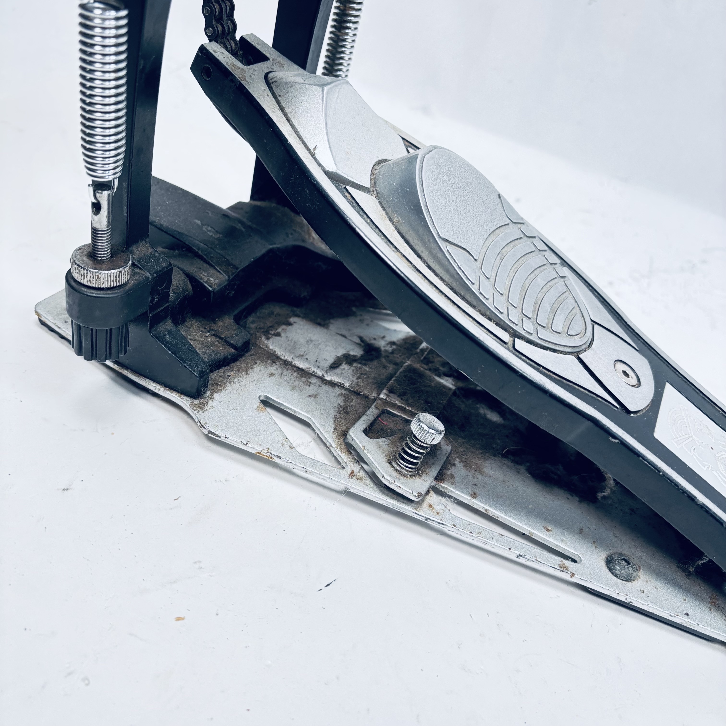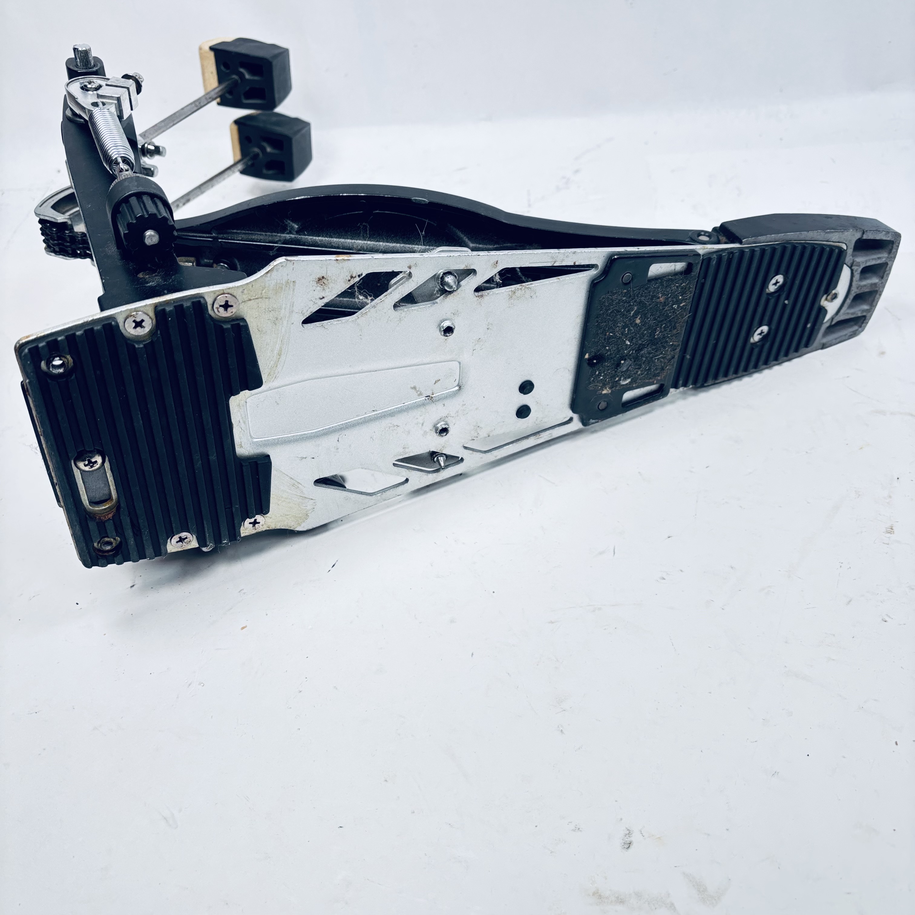 Double Bass Pedal is previously owned and works well. Scuffs/dirt/wear. See pictures for actual condition and items included.