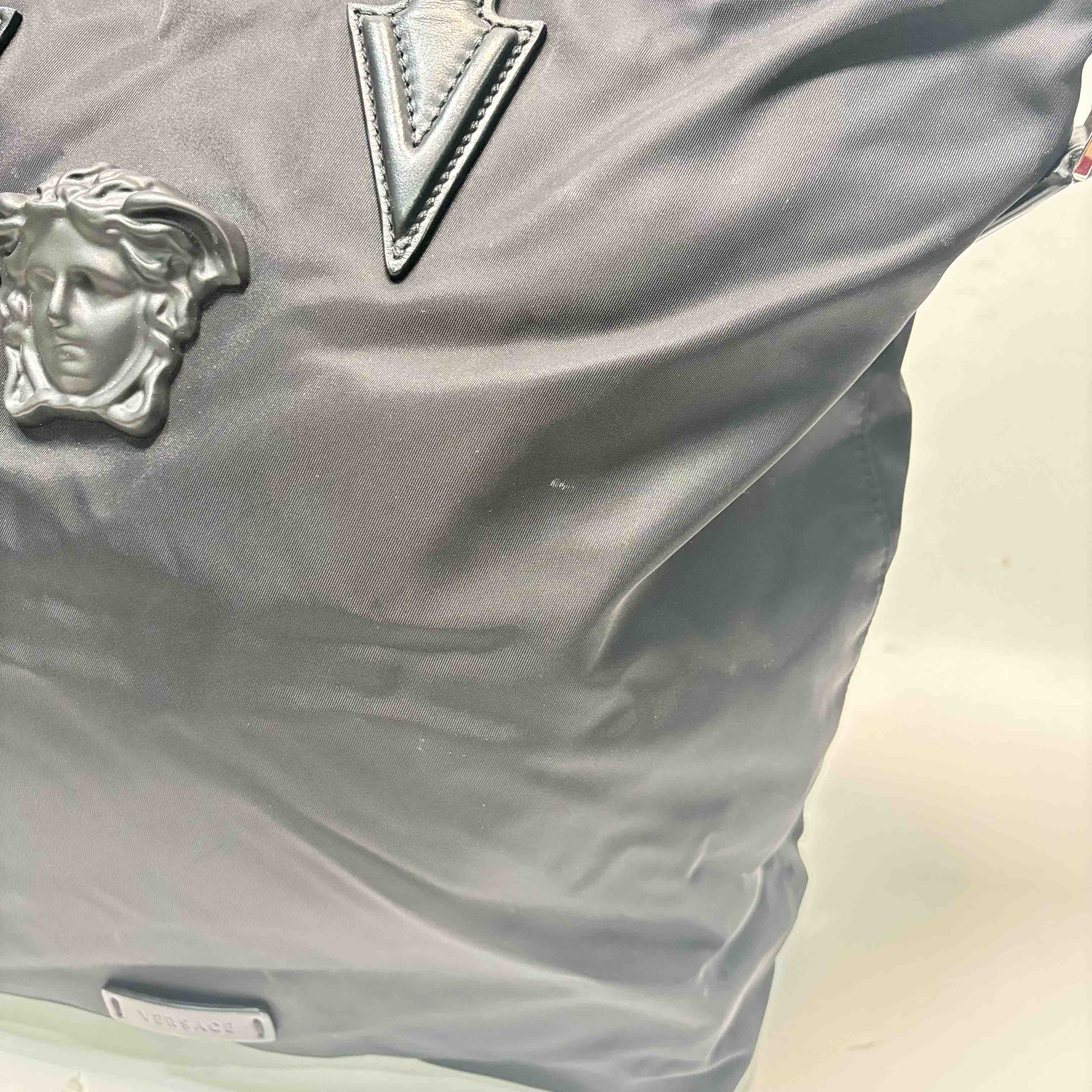Elevate your style with the luxurious Versace La Medusa Shoulder Tote. Crafted from sleek black nylon with elegant leather handles and eye-catching silver accents, this bag offers both fashion and functionality. Ideal for all occasions, its timeless design ensures you stand out wherever you go.